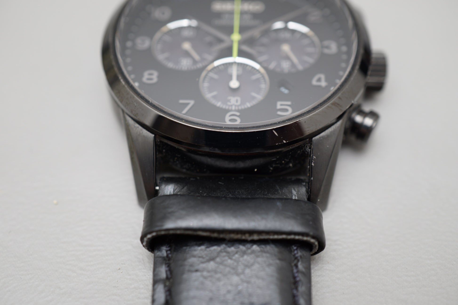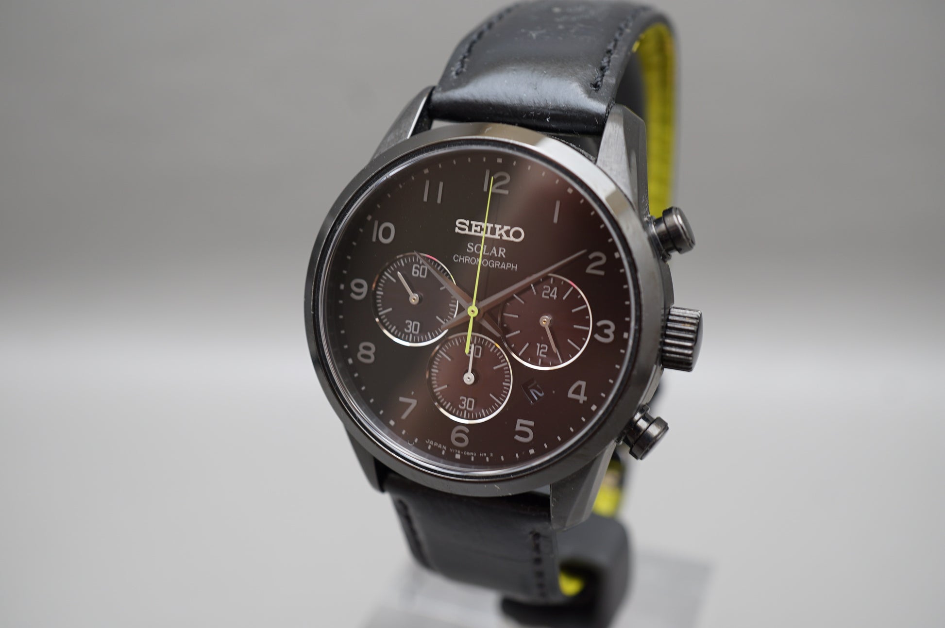 For sale is a Seiko V175-0BJ0 Blacked Out Lime Green Chronograph Solar Quartz Watch
