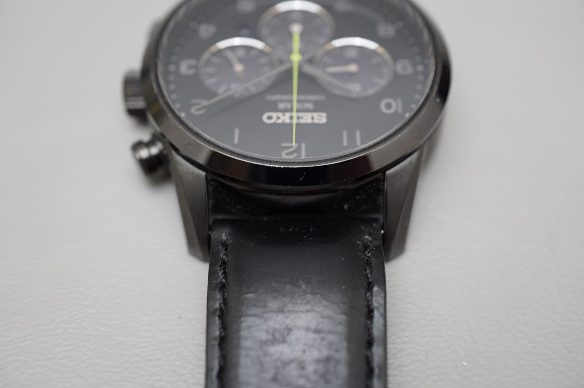 Seiko V175-0BJ0 Blacked Out Lime Green Seconds Chronograph Solar Quartz Watch