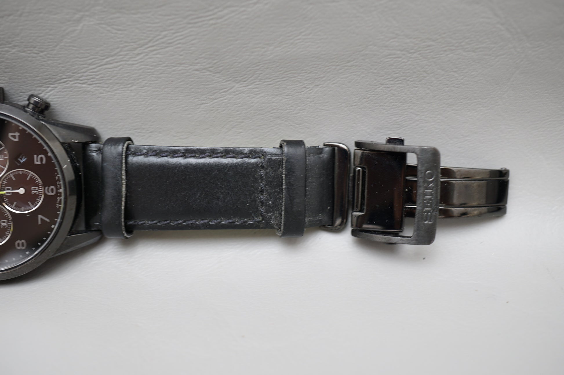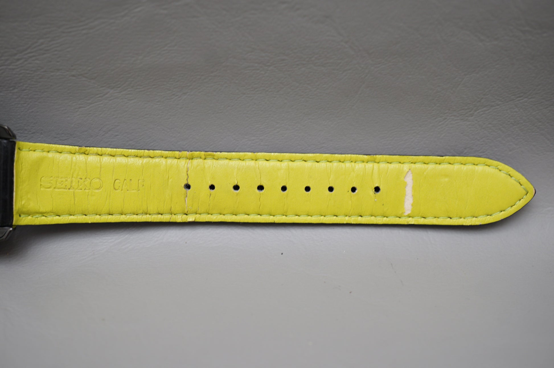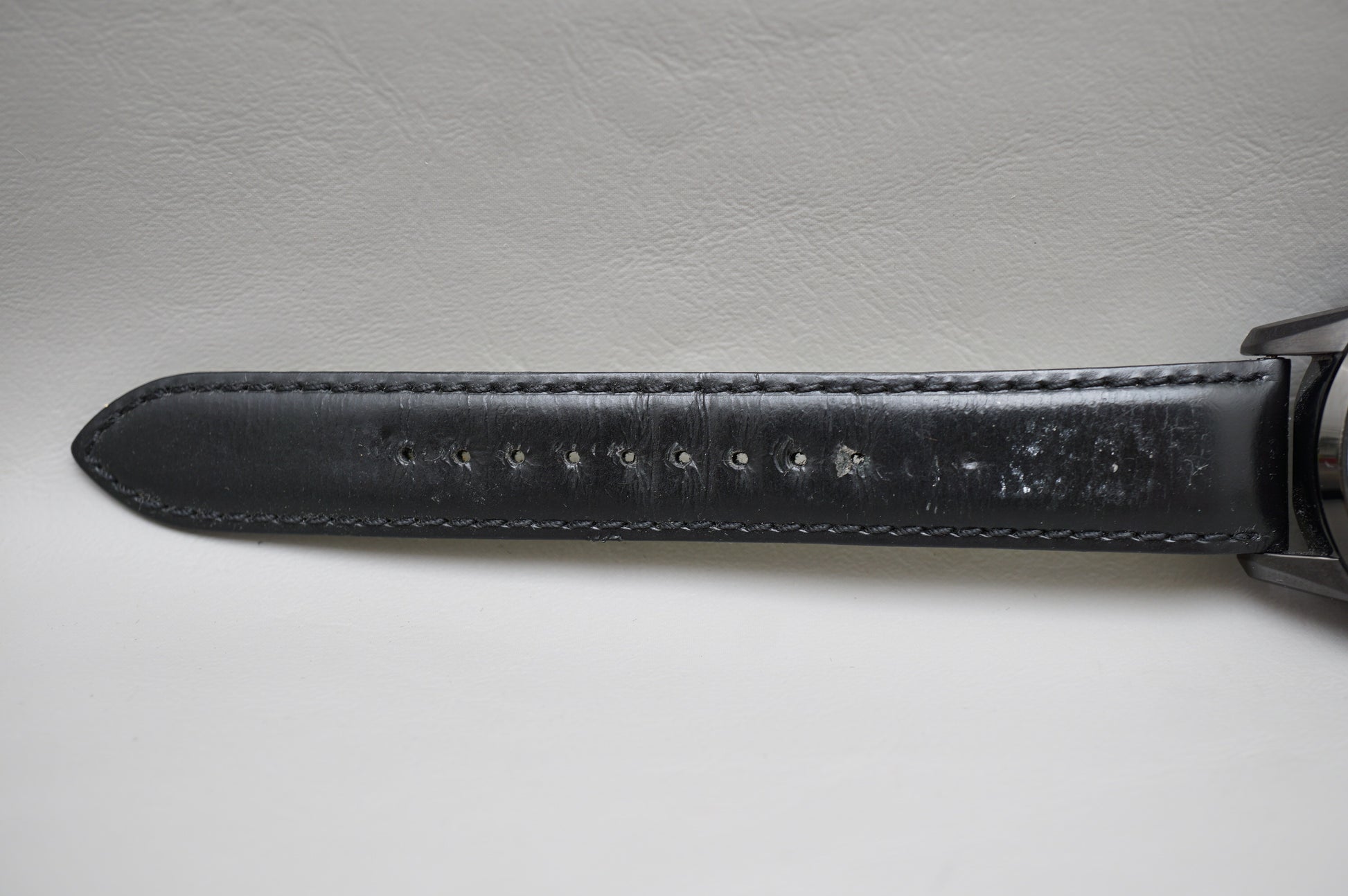 Strap: Original leather with deployant clasp. Cracking/deterioration on backside of strap