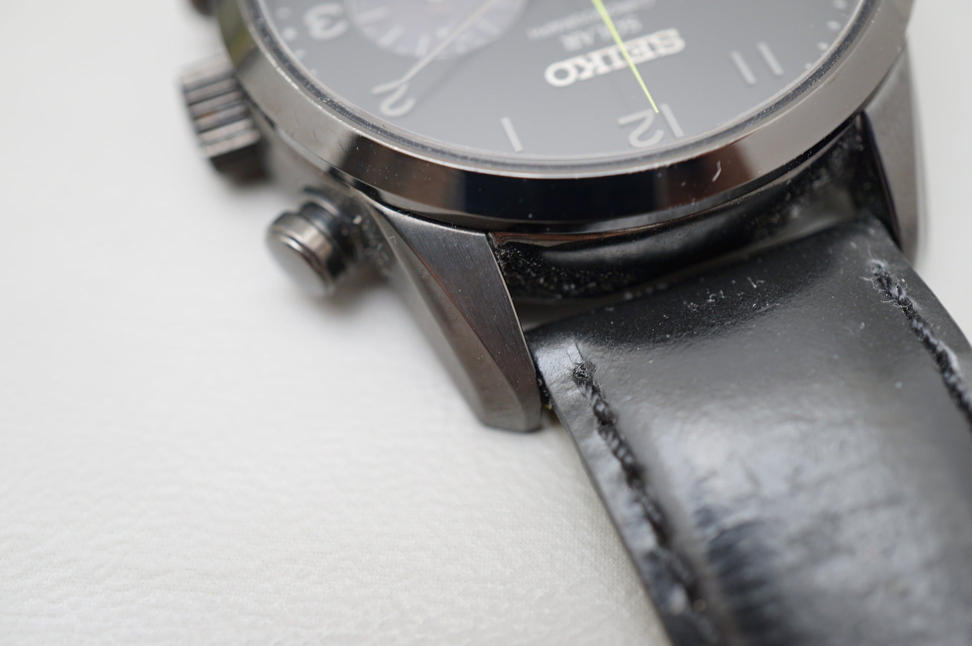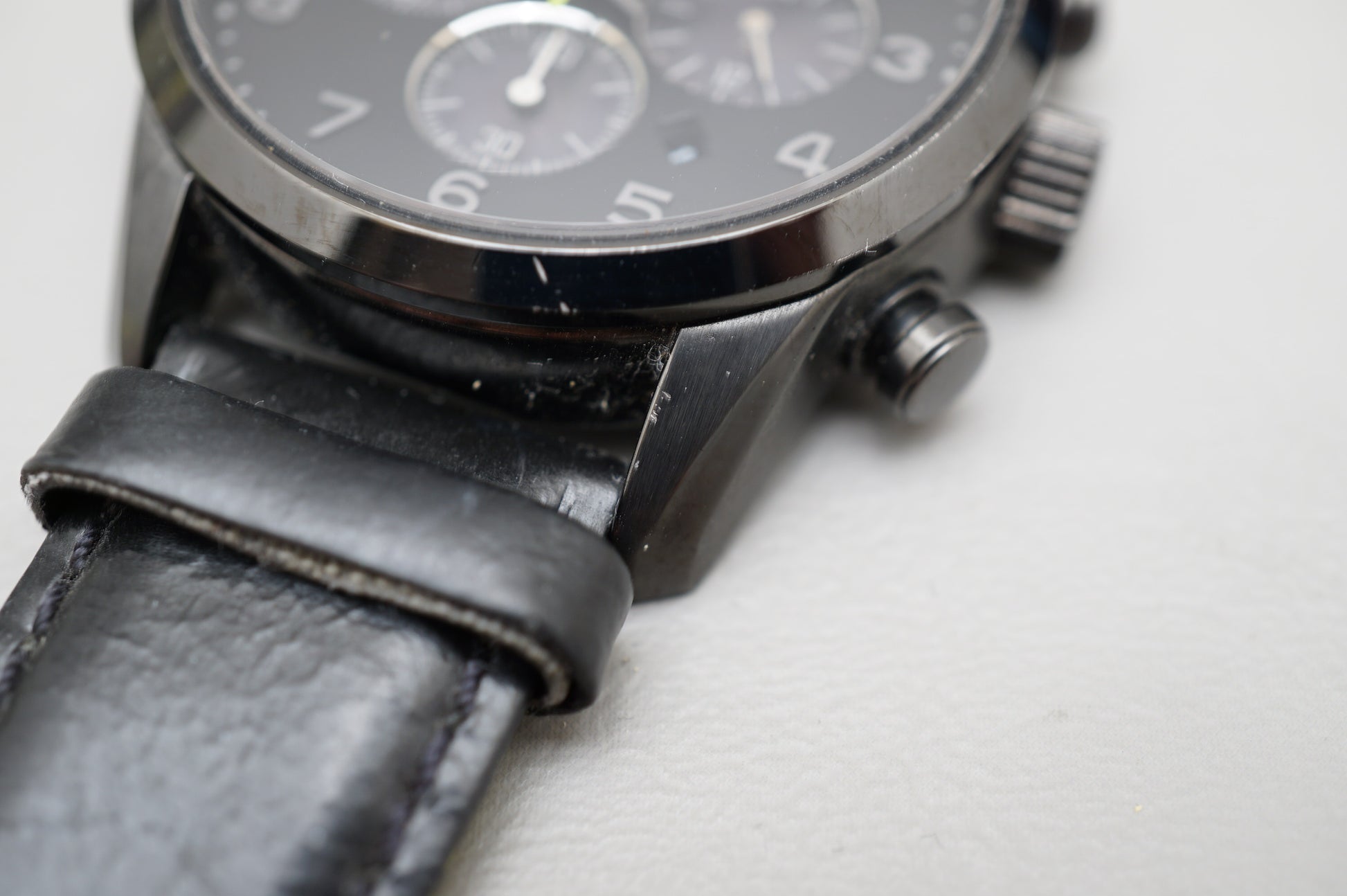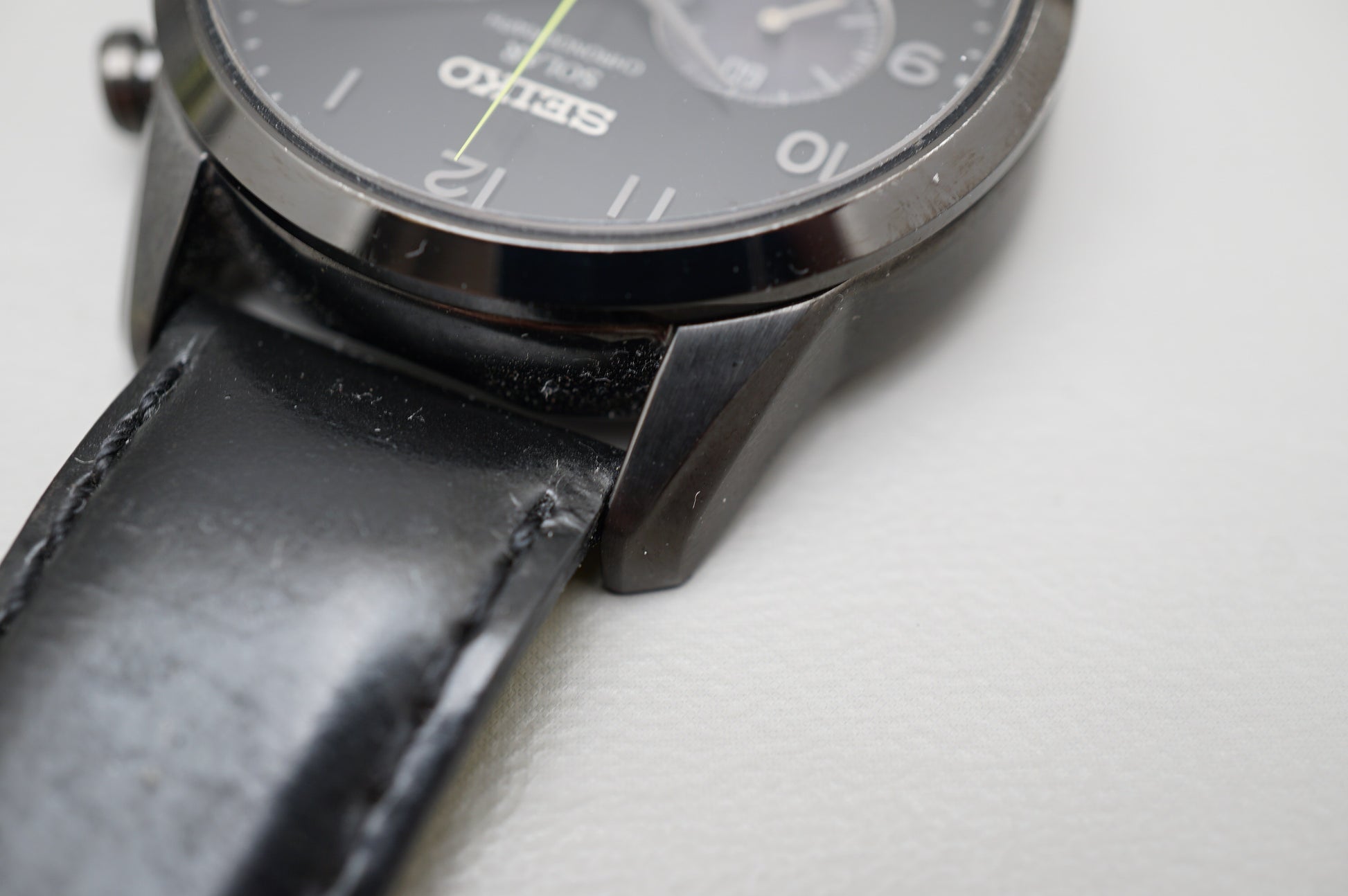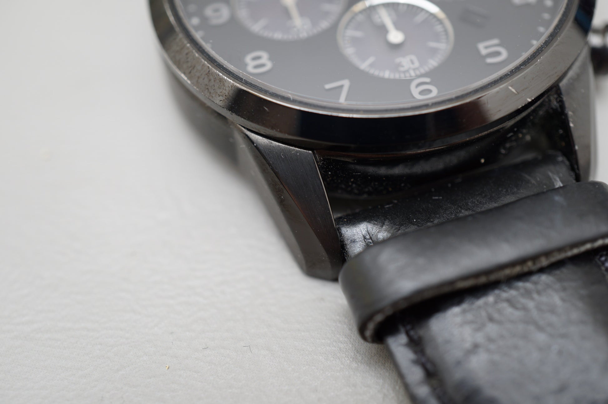 Strap: Original leather with deployant clasp. Cracking/deterioration on backside of strap
