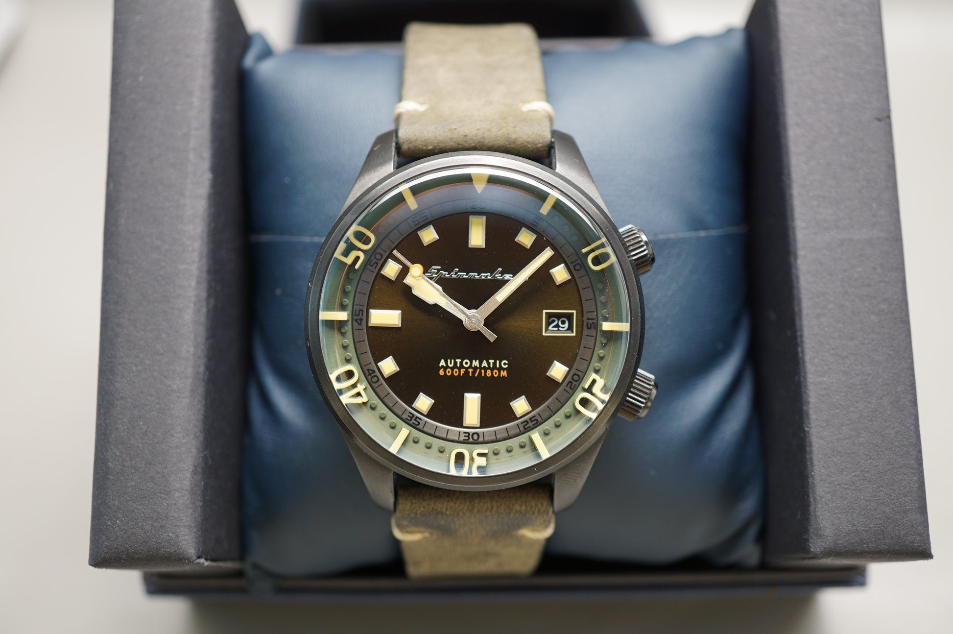 For sale is a Spinnaker Bradner SP-5062-0 Military Green Dial Supercompressor Automatic Watch