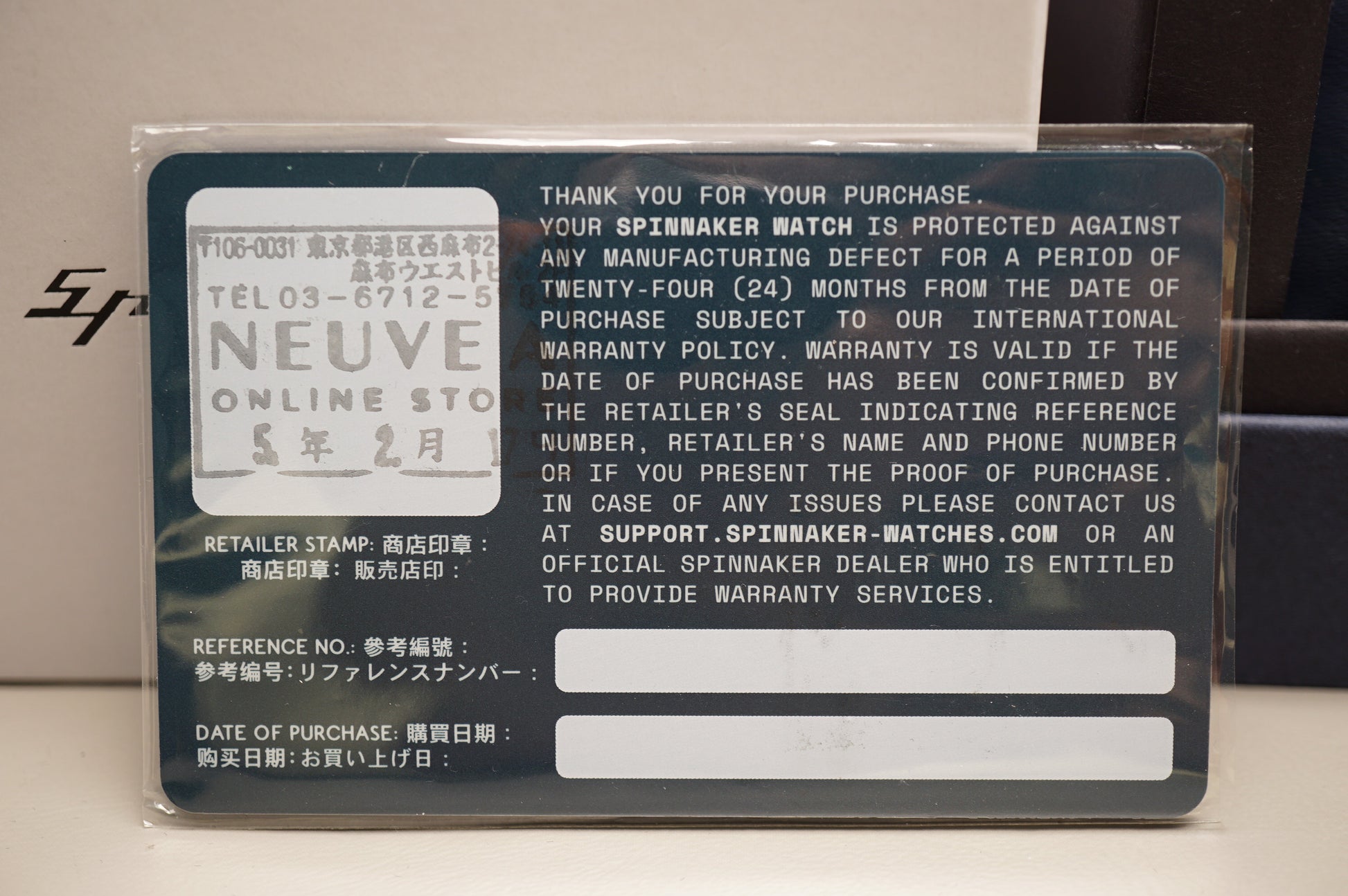 Warranty card: Stamped
