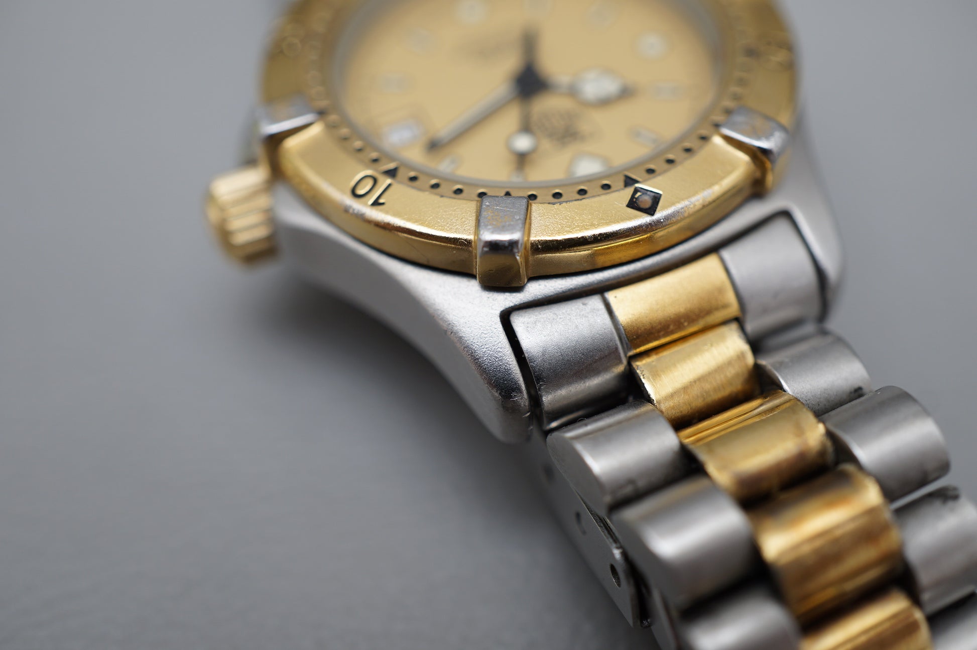 For sale is a Tag Heuer 2000 964.008 Two Tone Gold Dial Professional Ladies Quartz Watch