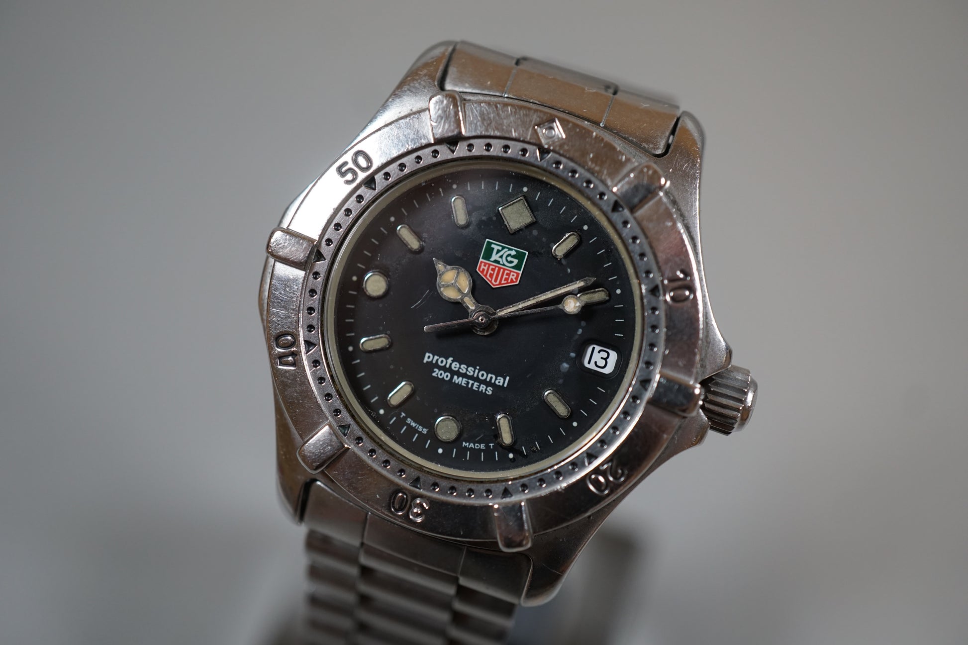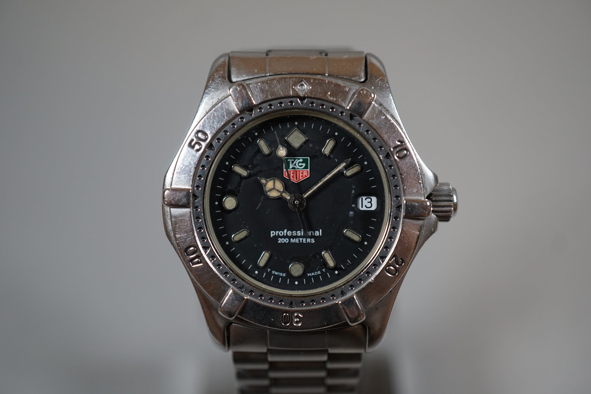 For sale is a Tag Heuer Professional 2000 WE1210-R Black Dial 200M Quartz Watch