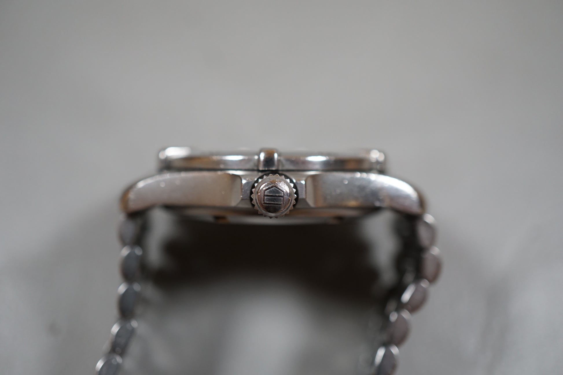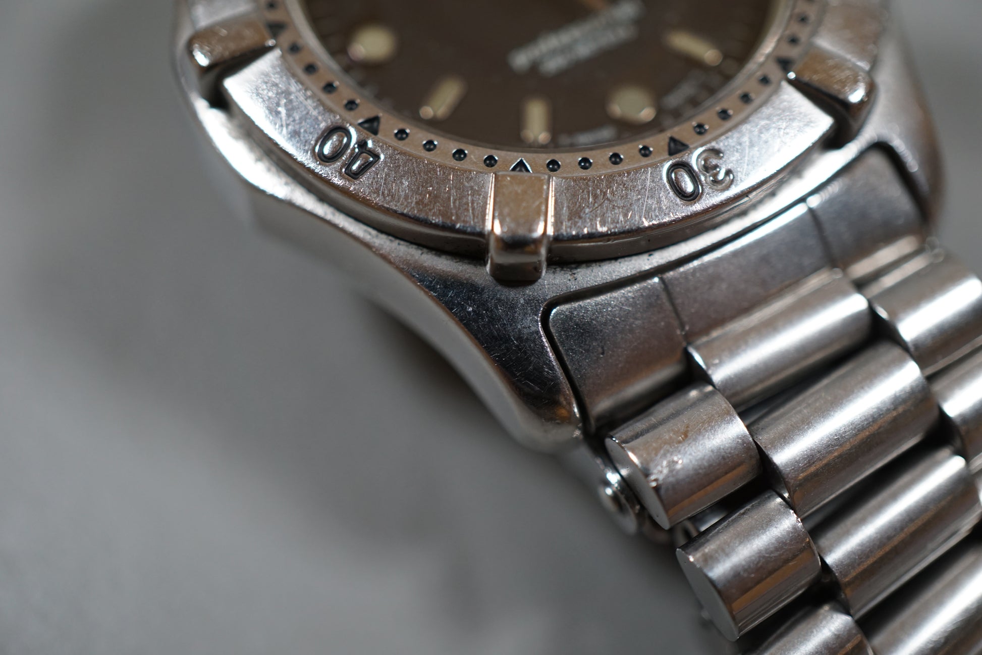 Case appears to have been refinished, debris under crystal, and deterioration on dial. Bezel action and crown screws down correctly.
