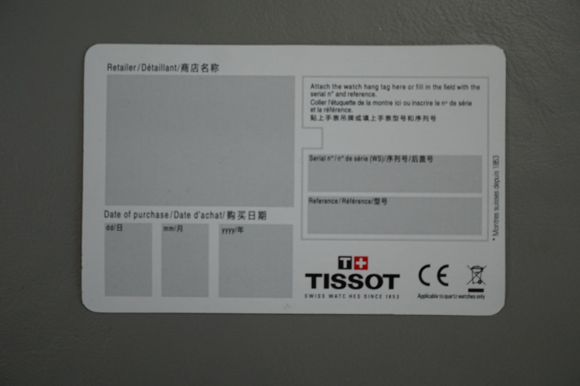 Warranty card: Blank