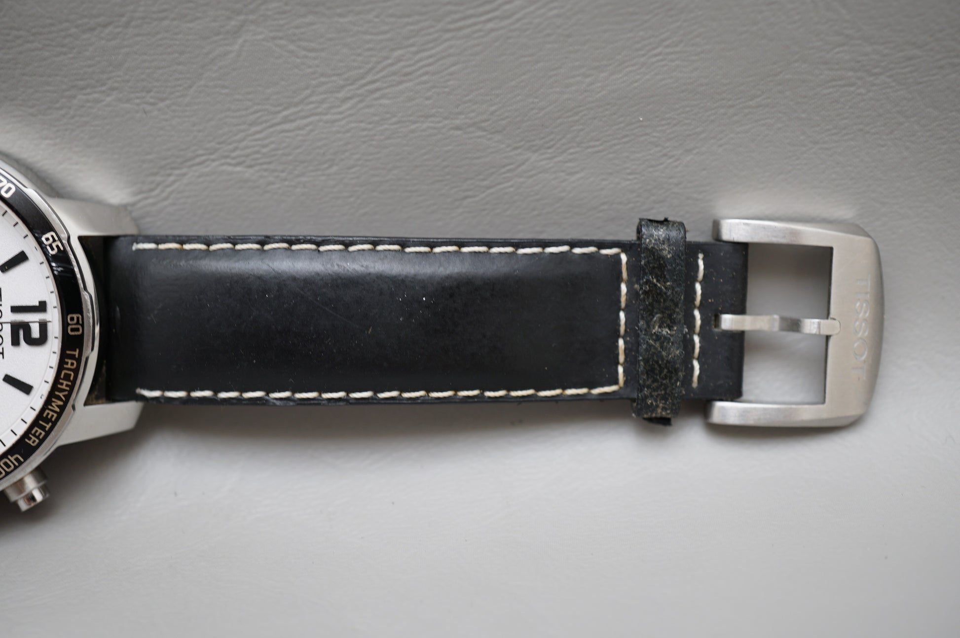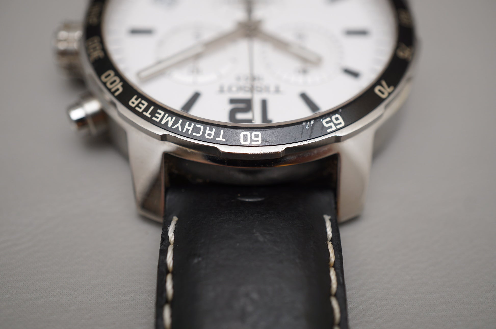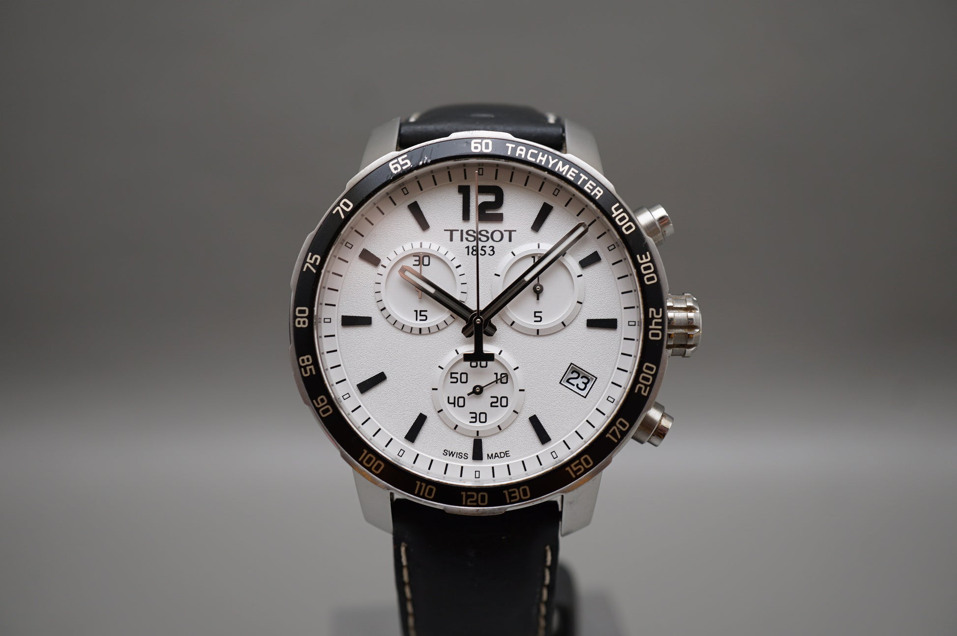 For sale is a Tissot T095.417.16.037.00 Quickster White Dial Chronograph Tachymeter Quartz Watch