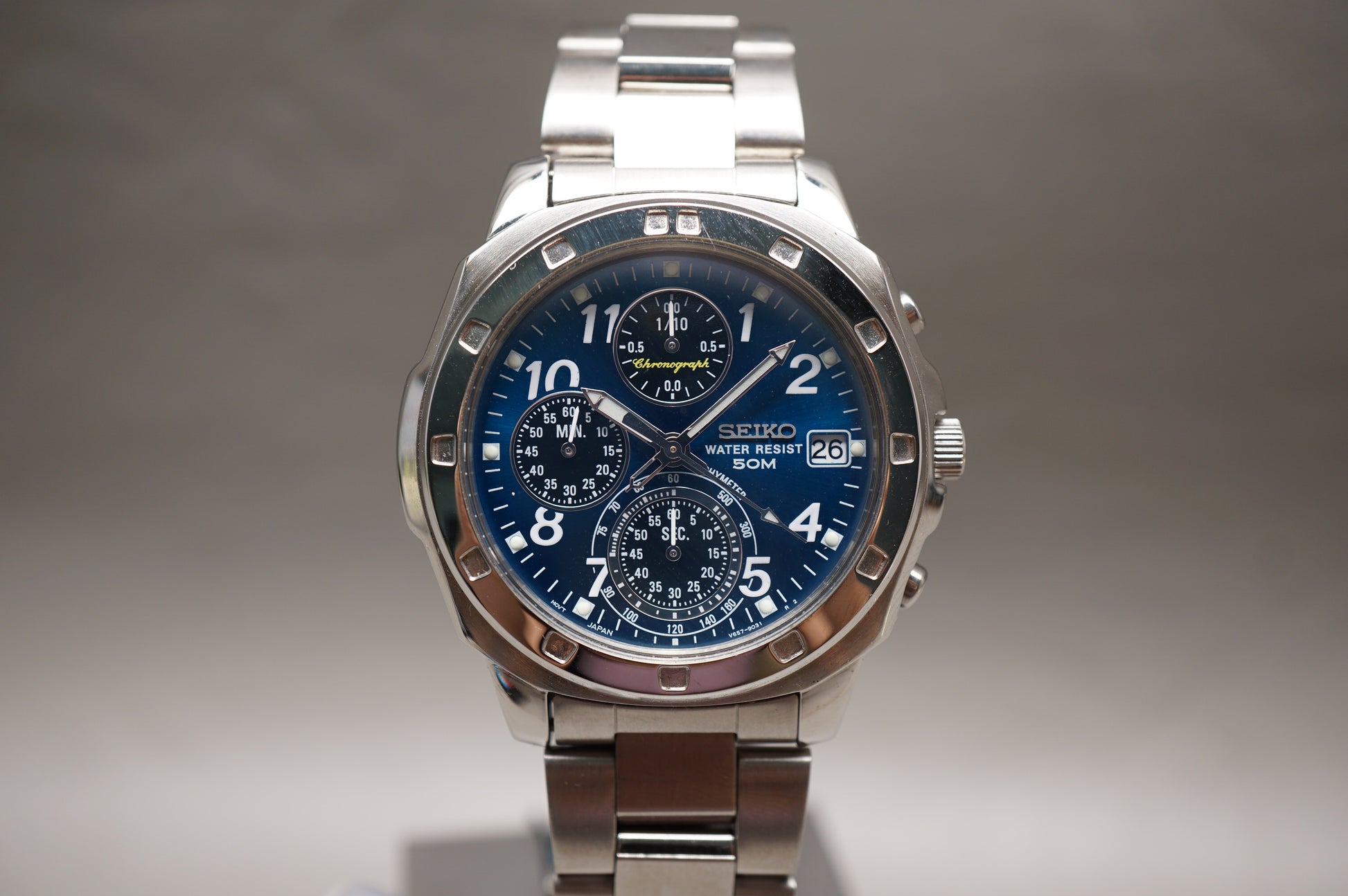 For sale is a Seiko SKS043P1 Blue Dial Quartz Chronograph Watch
