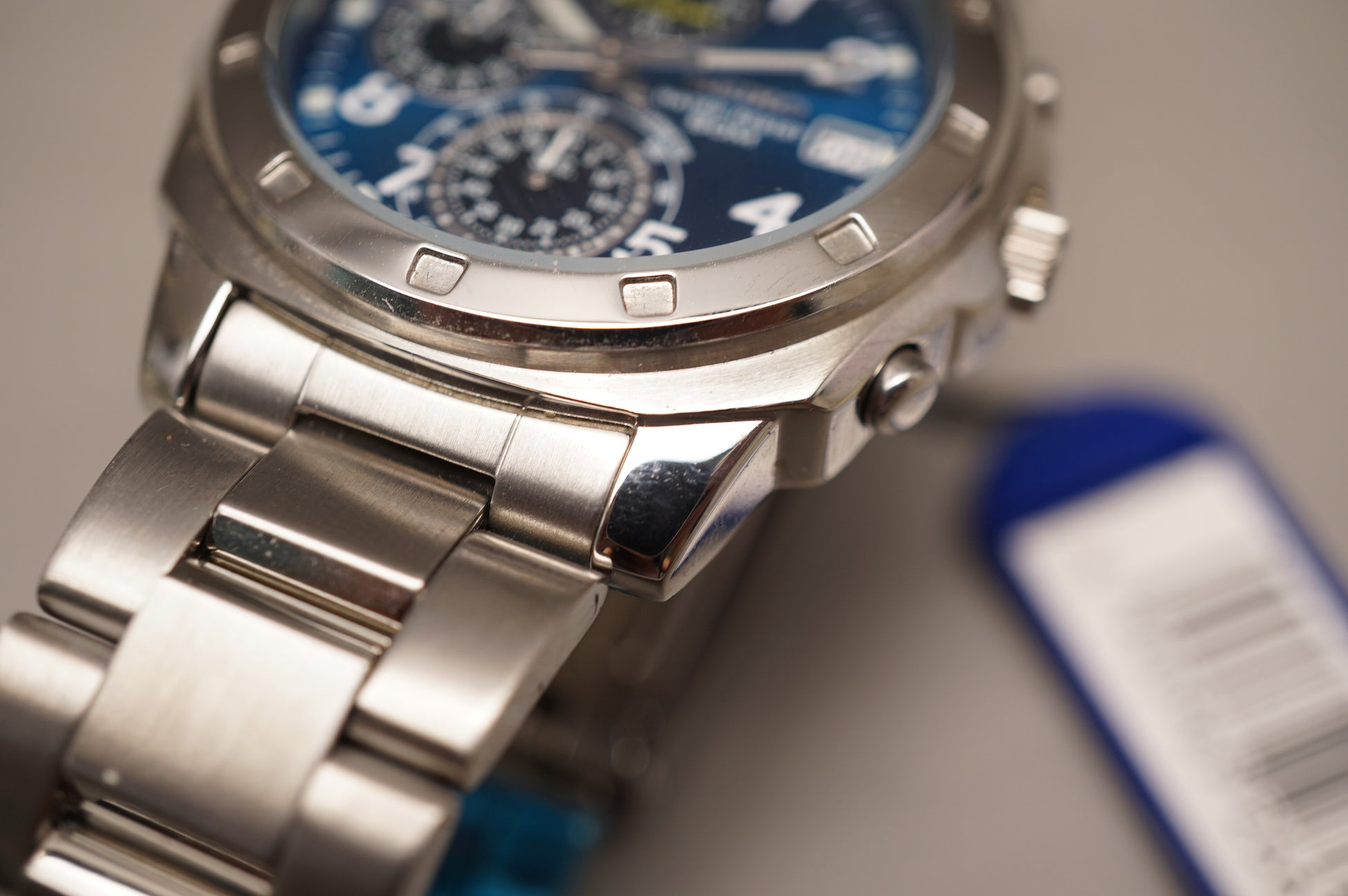 Unworn NOS Seiko SKS043P1 V657 Blue Dial Quartz Chronograph Watch