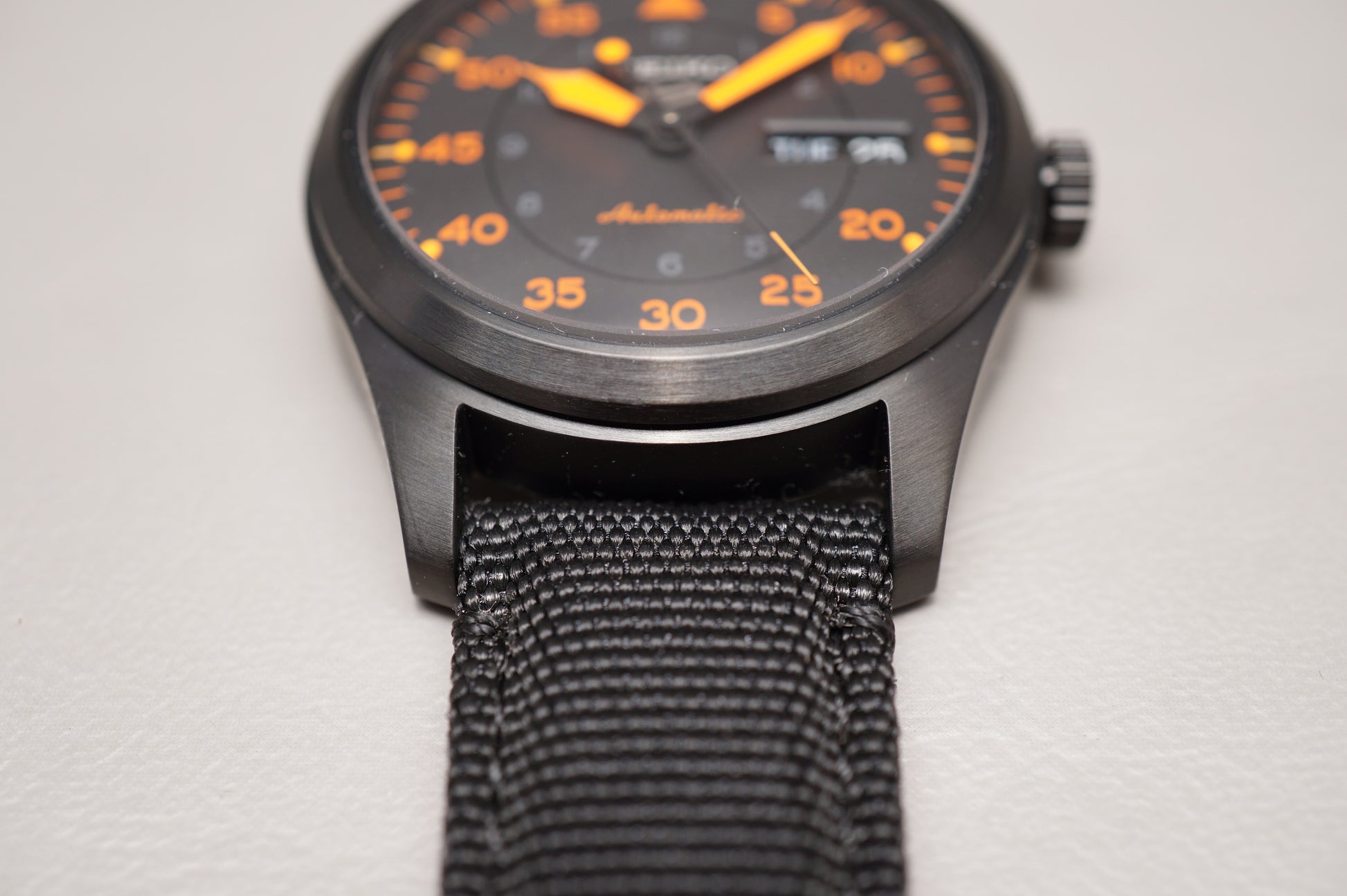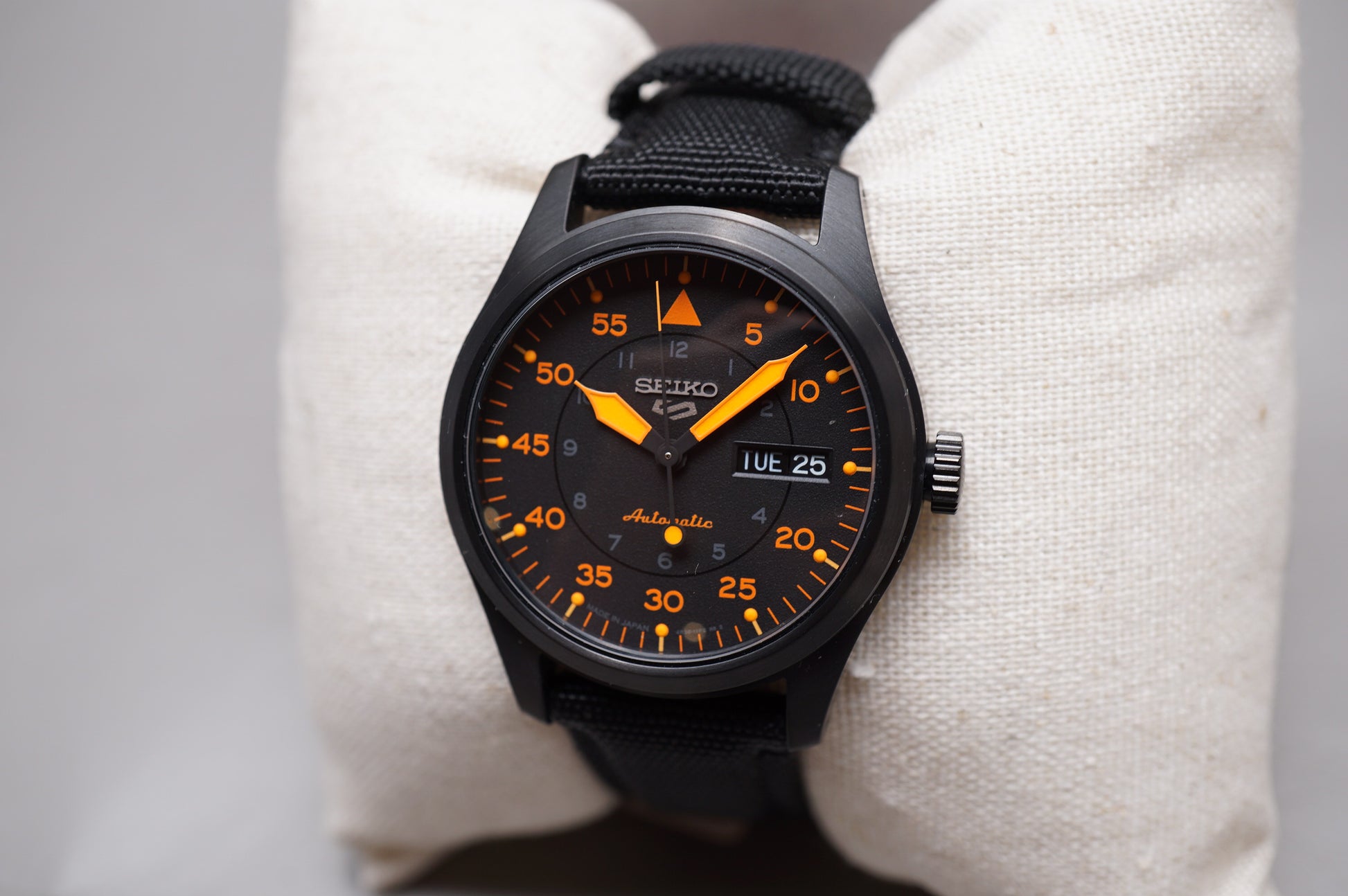 For sale is a Seiko 5 Sports SBSA143 Street Style Flieger Black Orange Automatic Watch