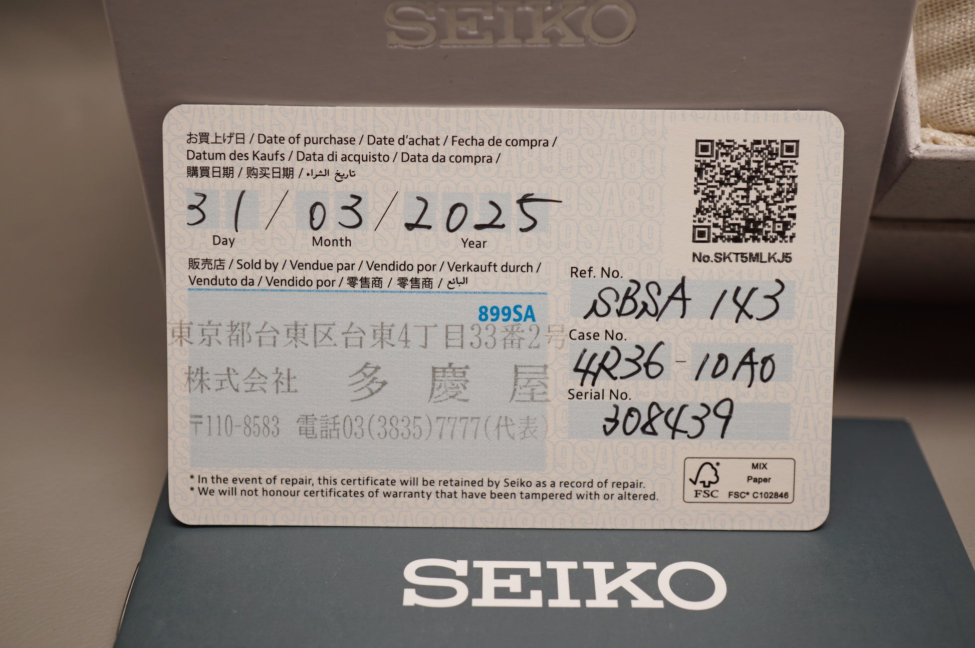 Unworn Seiko 5 Sports SBSA143 4R36 Flieger Style Black Orange Automatic Watch