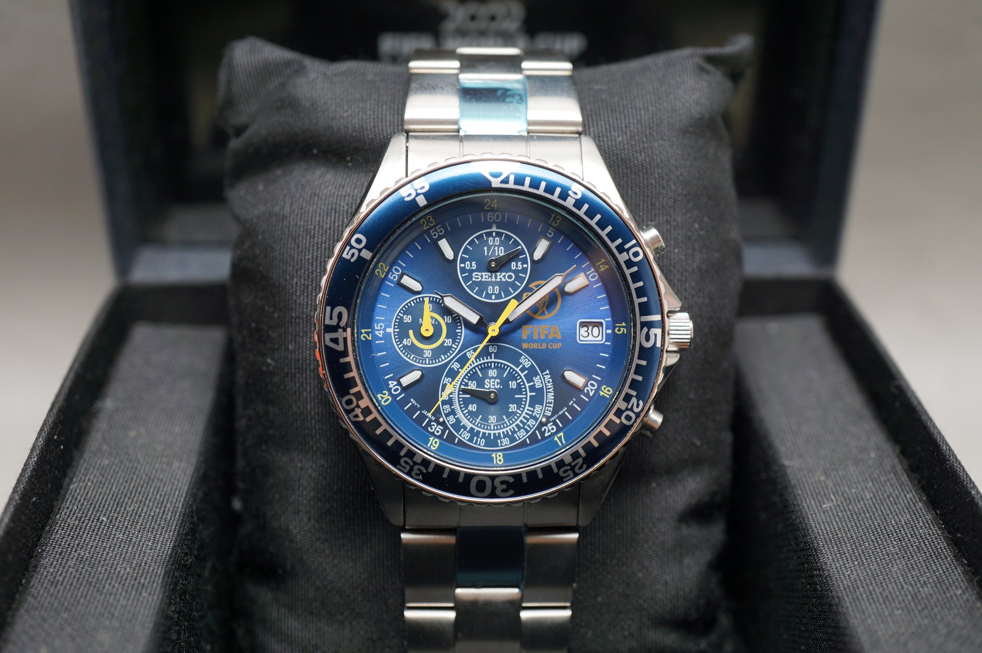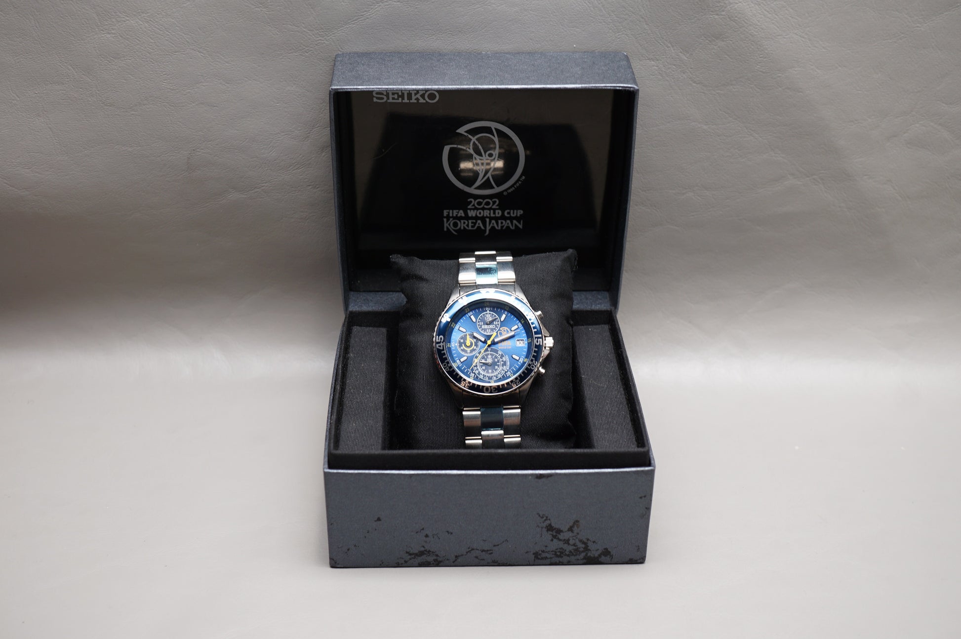 For sale is a Seiko SCQP003 V657-0AA0 2002 FIFA World Cup Blue Dial Quartz Watch