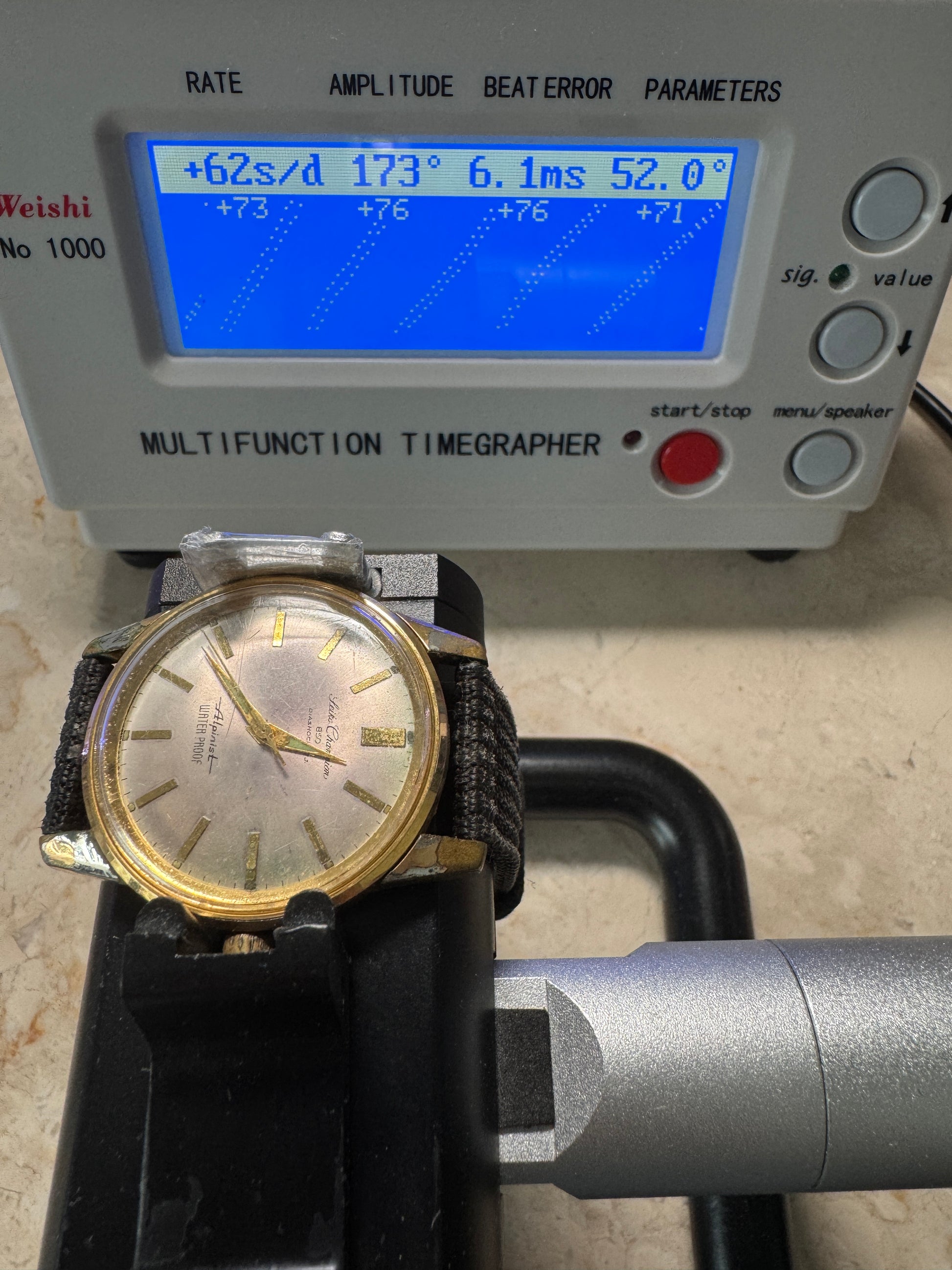 Serial dates production to January 1964. Discoloration and chipping on case, discoloration and deterioration and dial. Service history unknown.