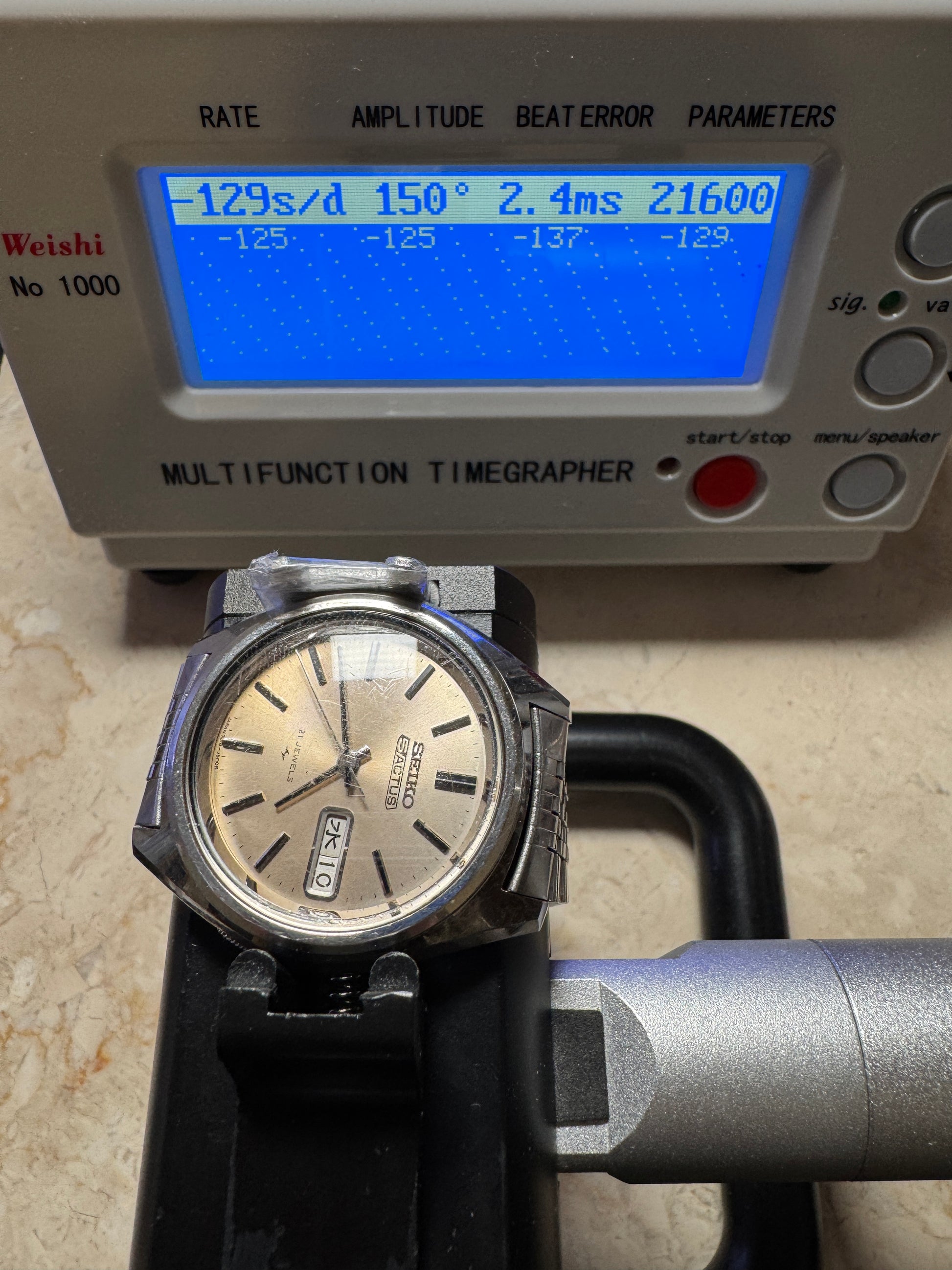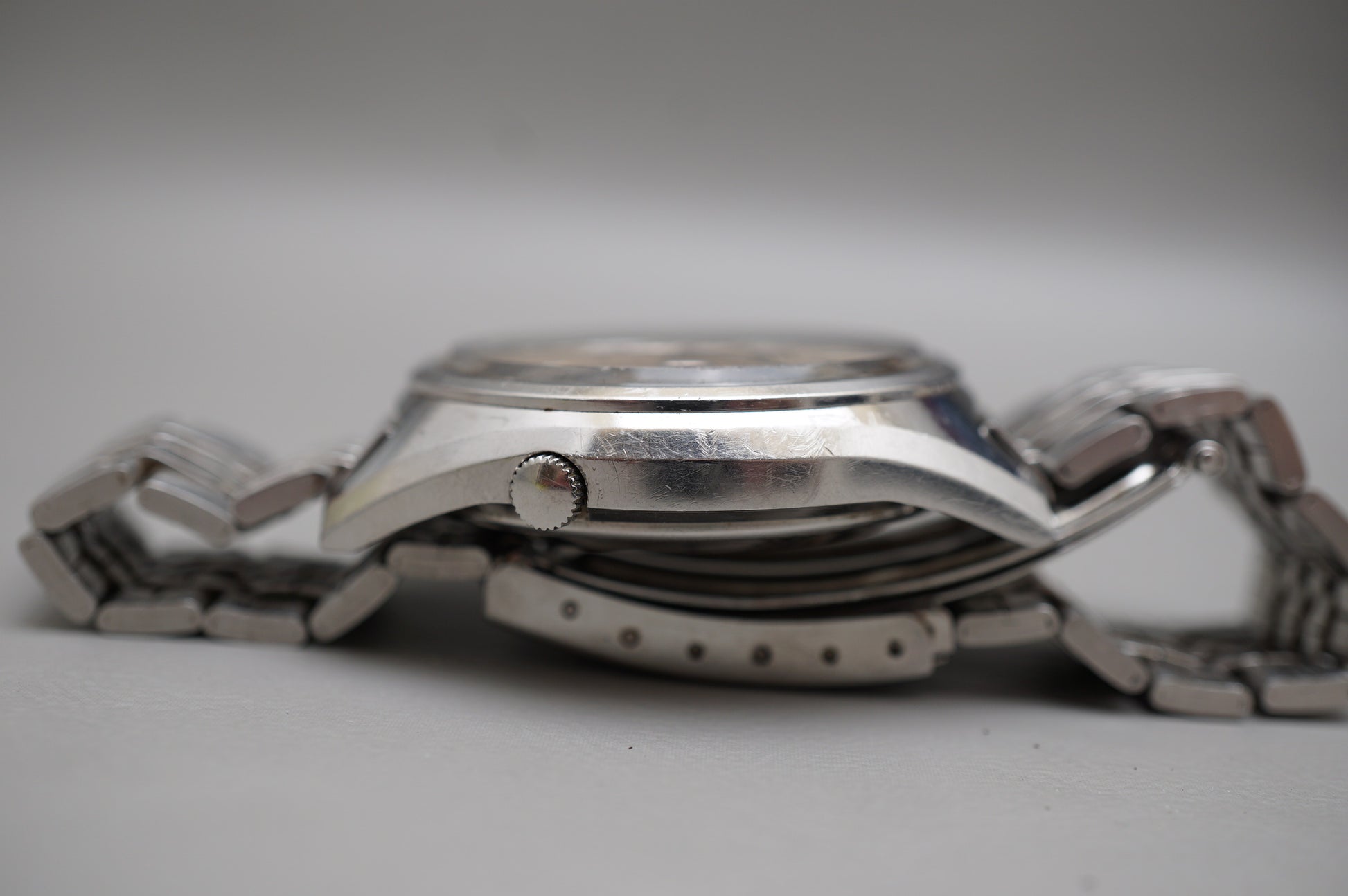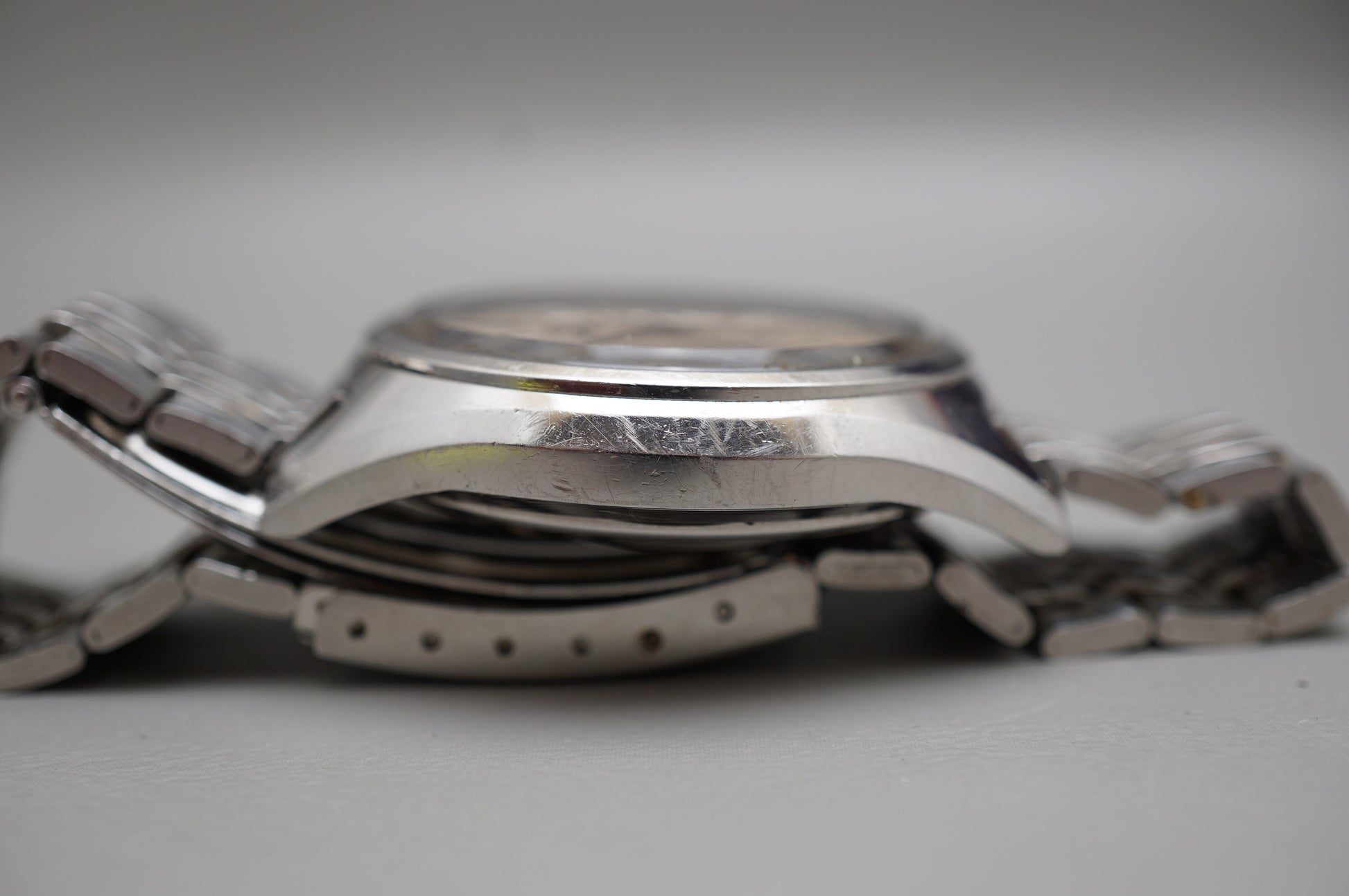 Serial dates production to February 1975. Service history unknown, watch is losing time on the timegrapher. Wear on crystal.