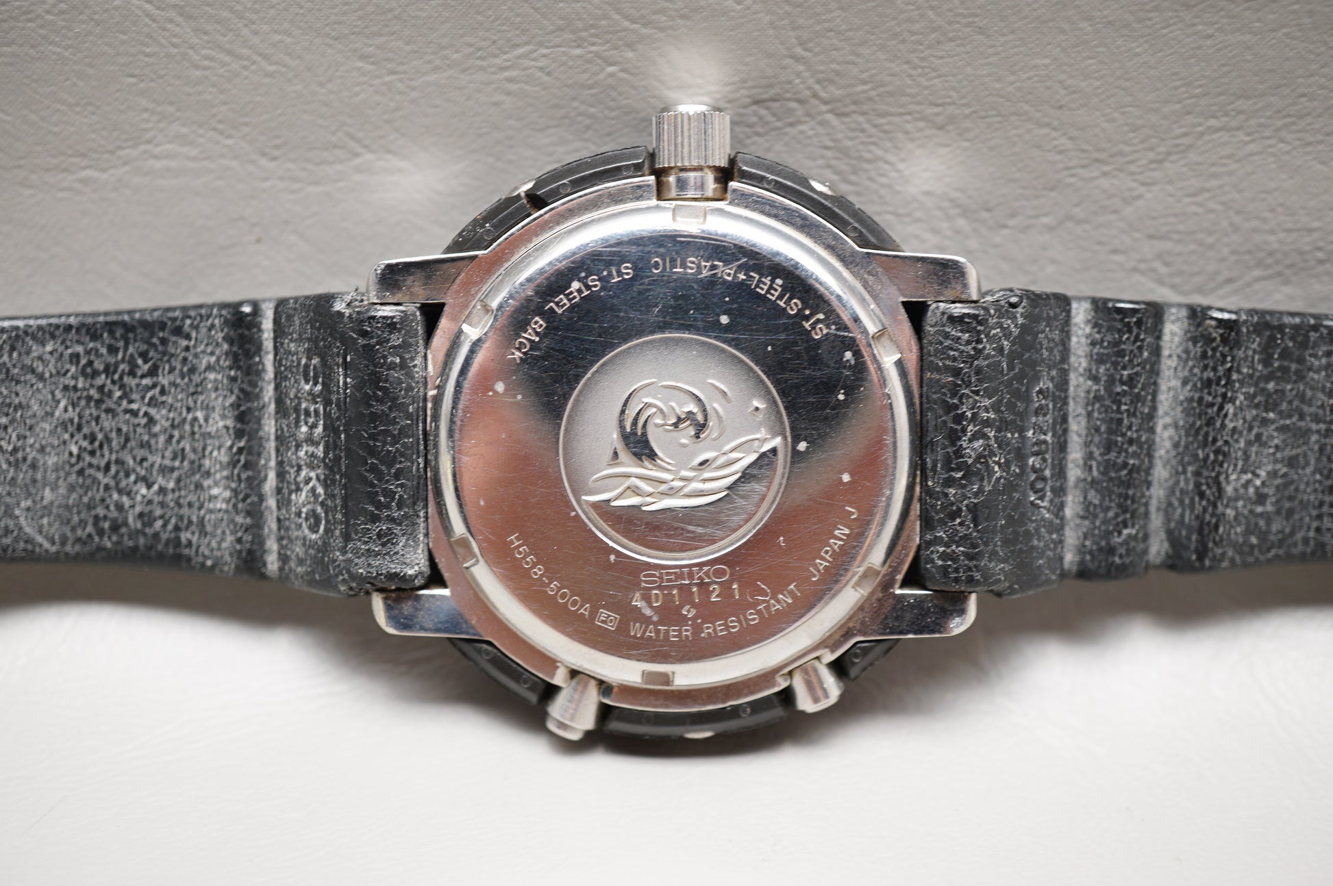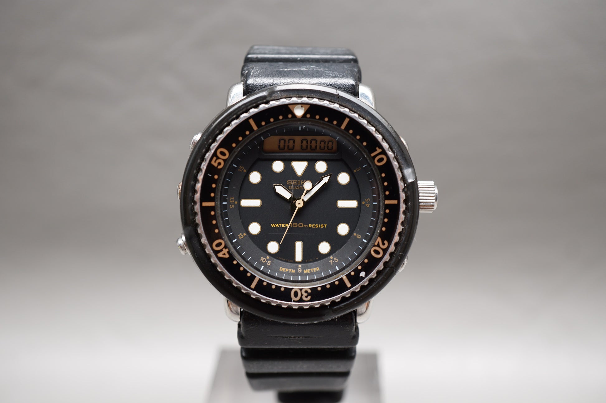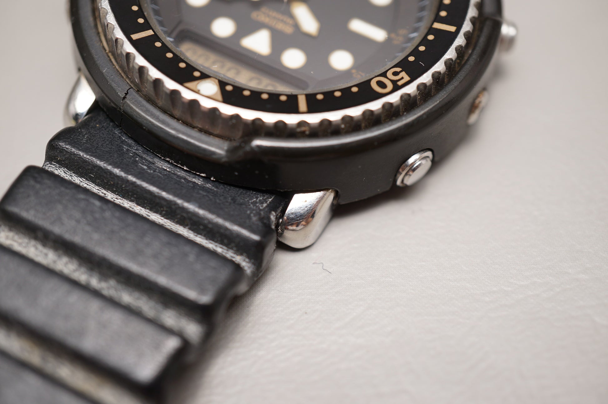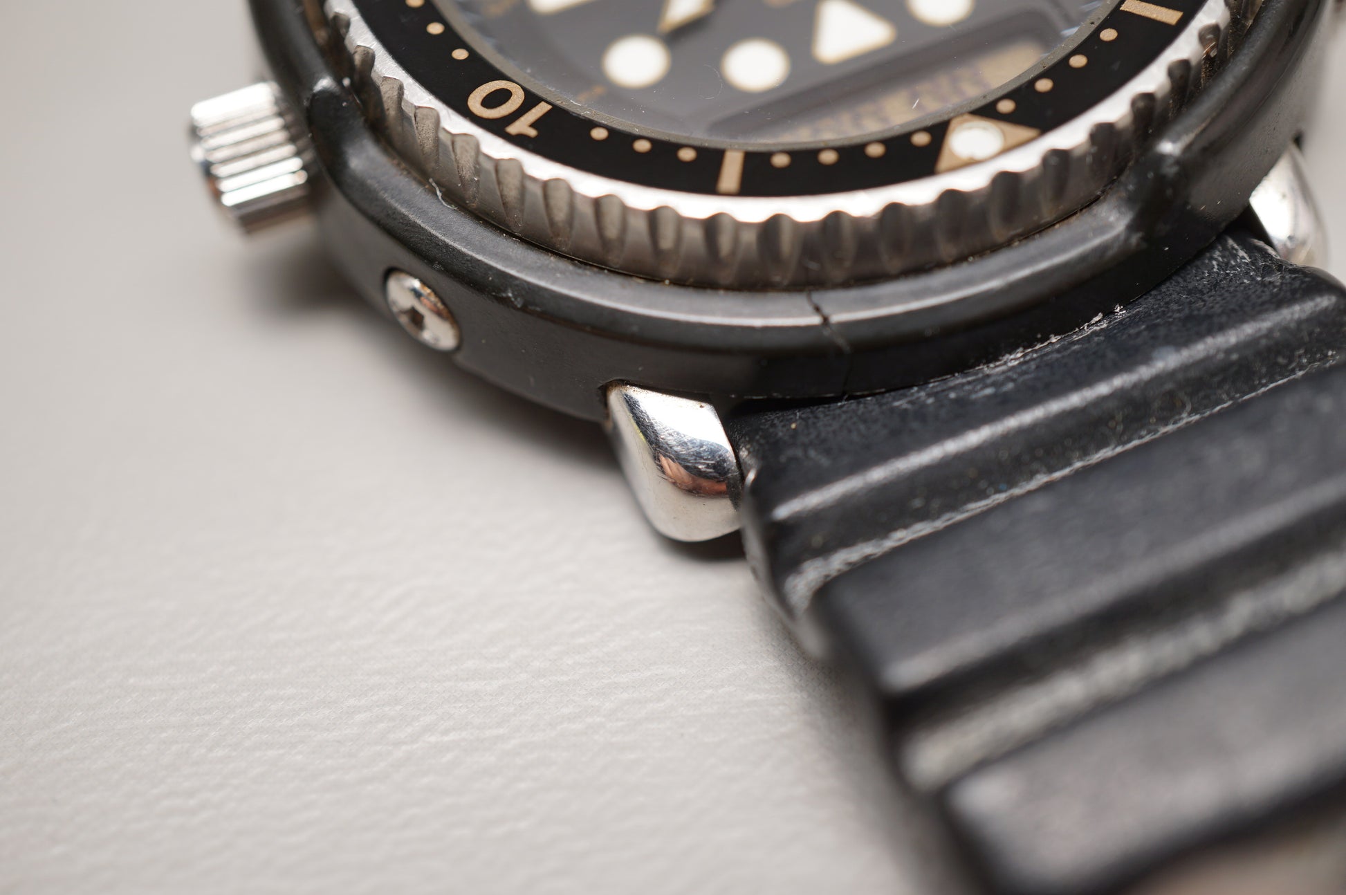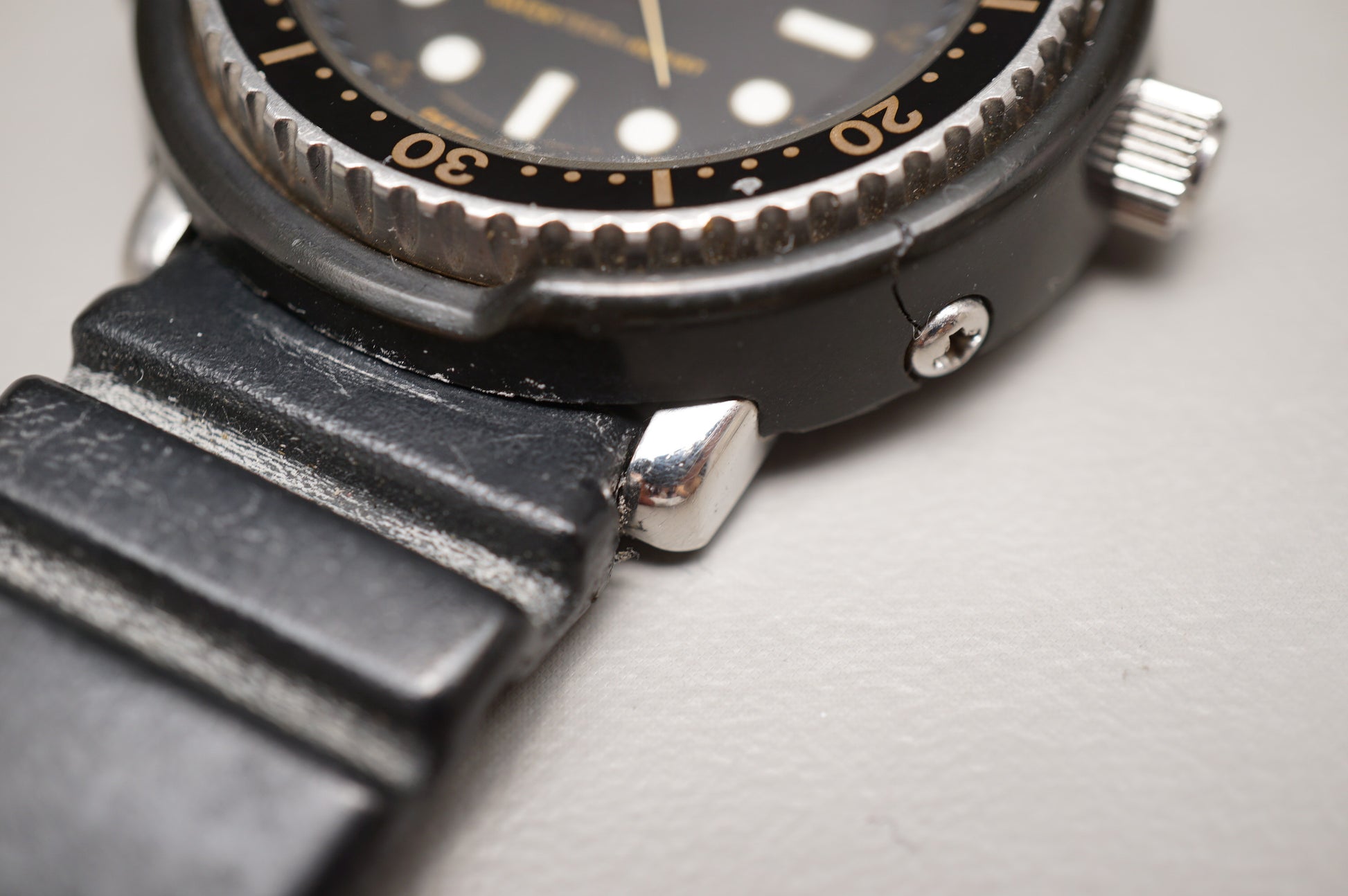 Strap: Vintage Seiko rubber, deterioration from age, should be replaced before wearing.