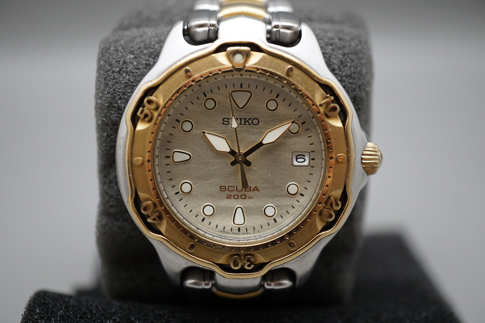Vintage 1993 Seiko 7N35-6030 Two Tone Scuba 200M Quartz Watch