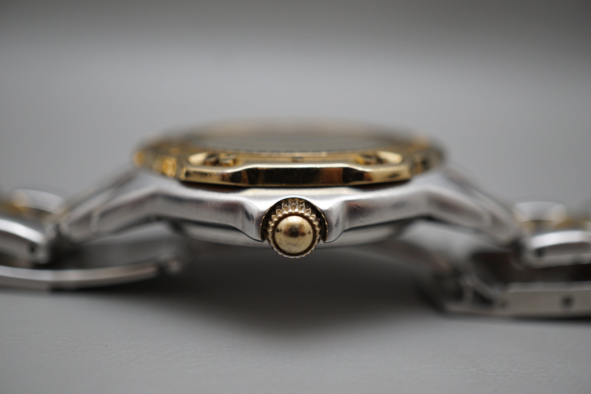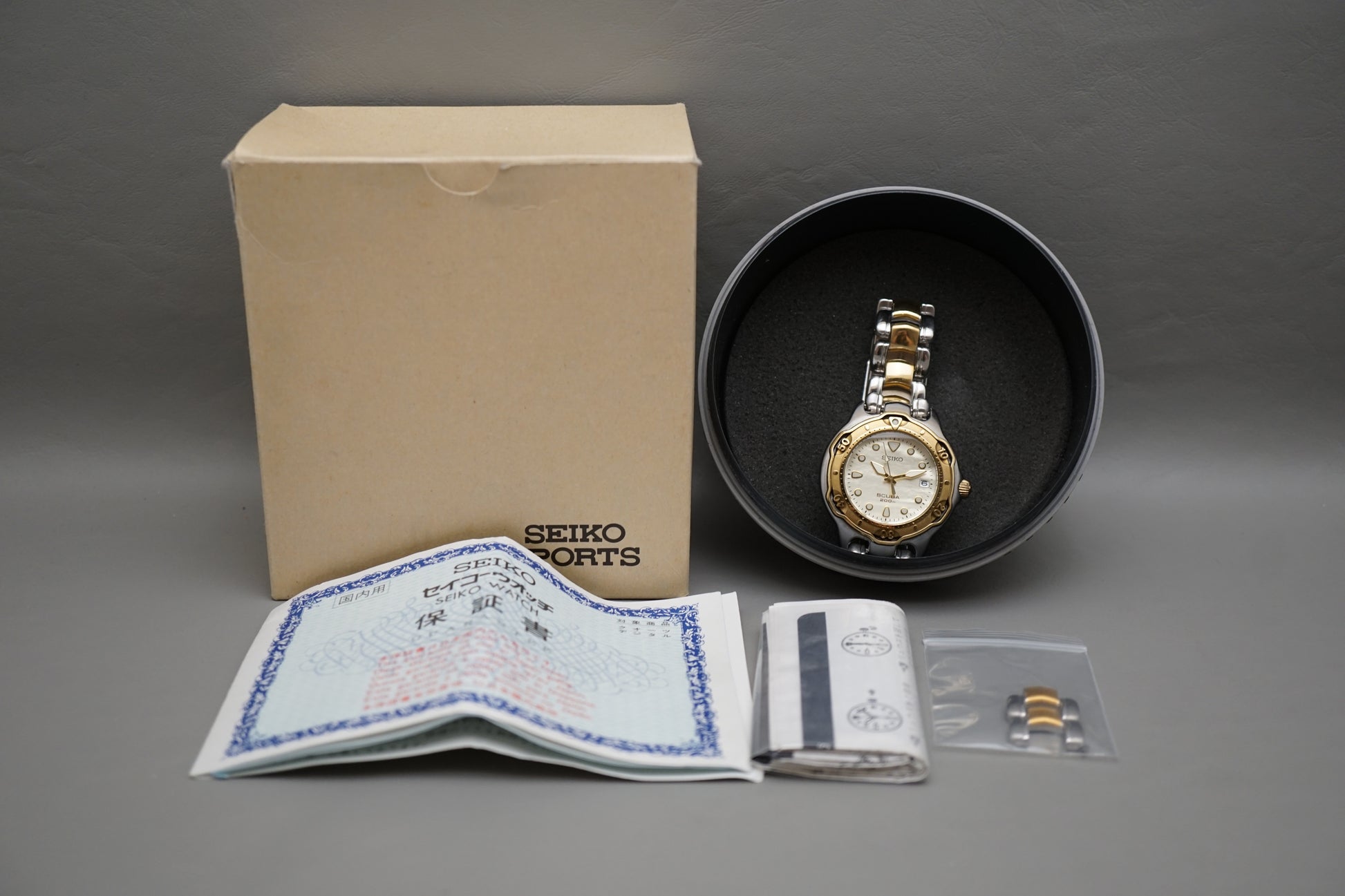 Serial dates production to January 1993. Rare find with original accessories. Crown screws down correctly. Overclasp on clasp is difficult to open.