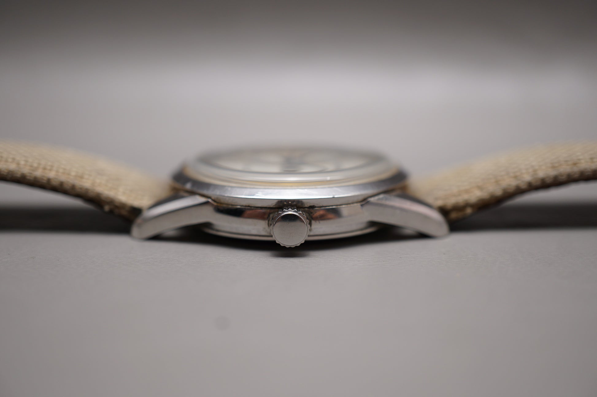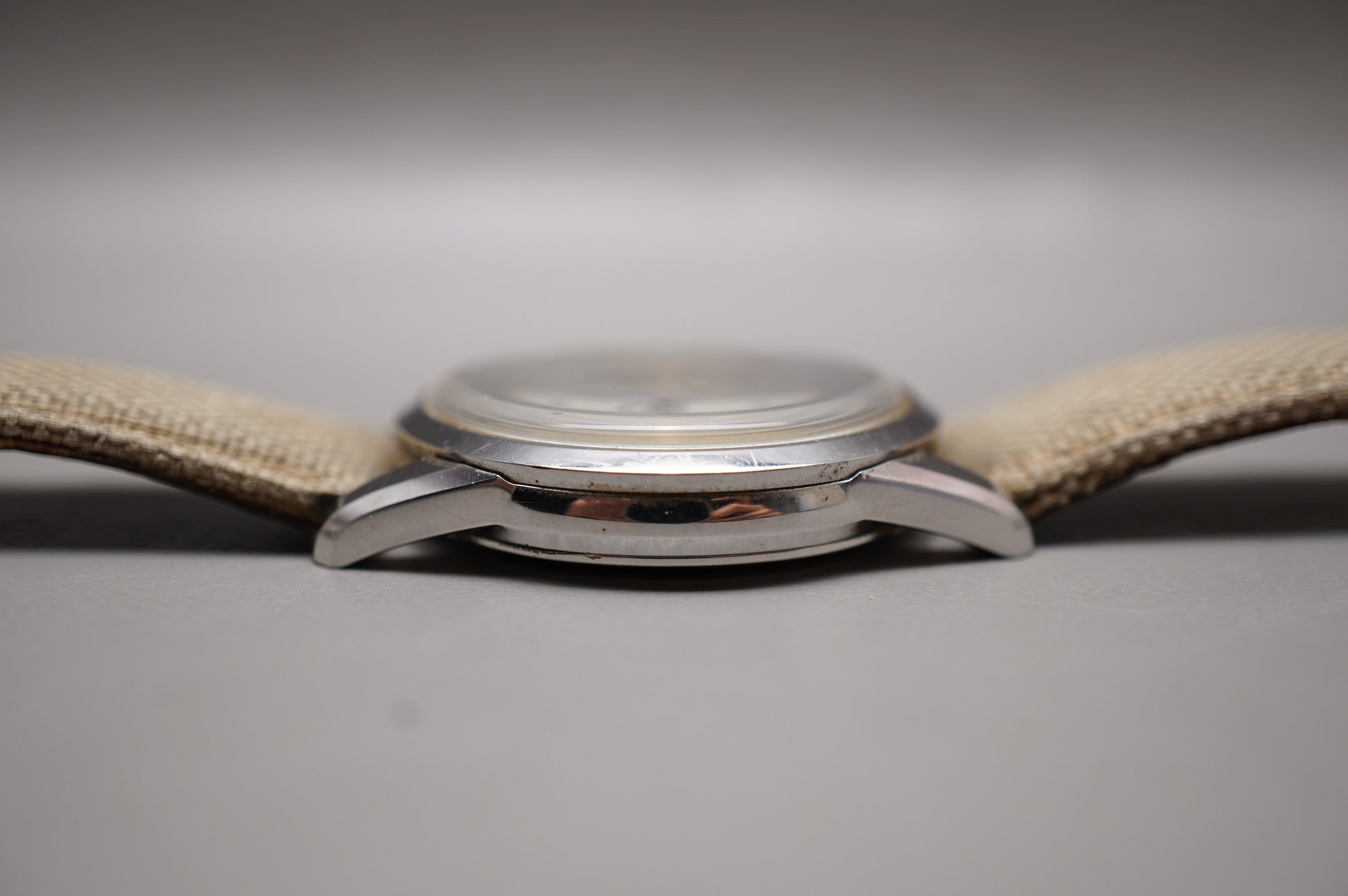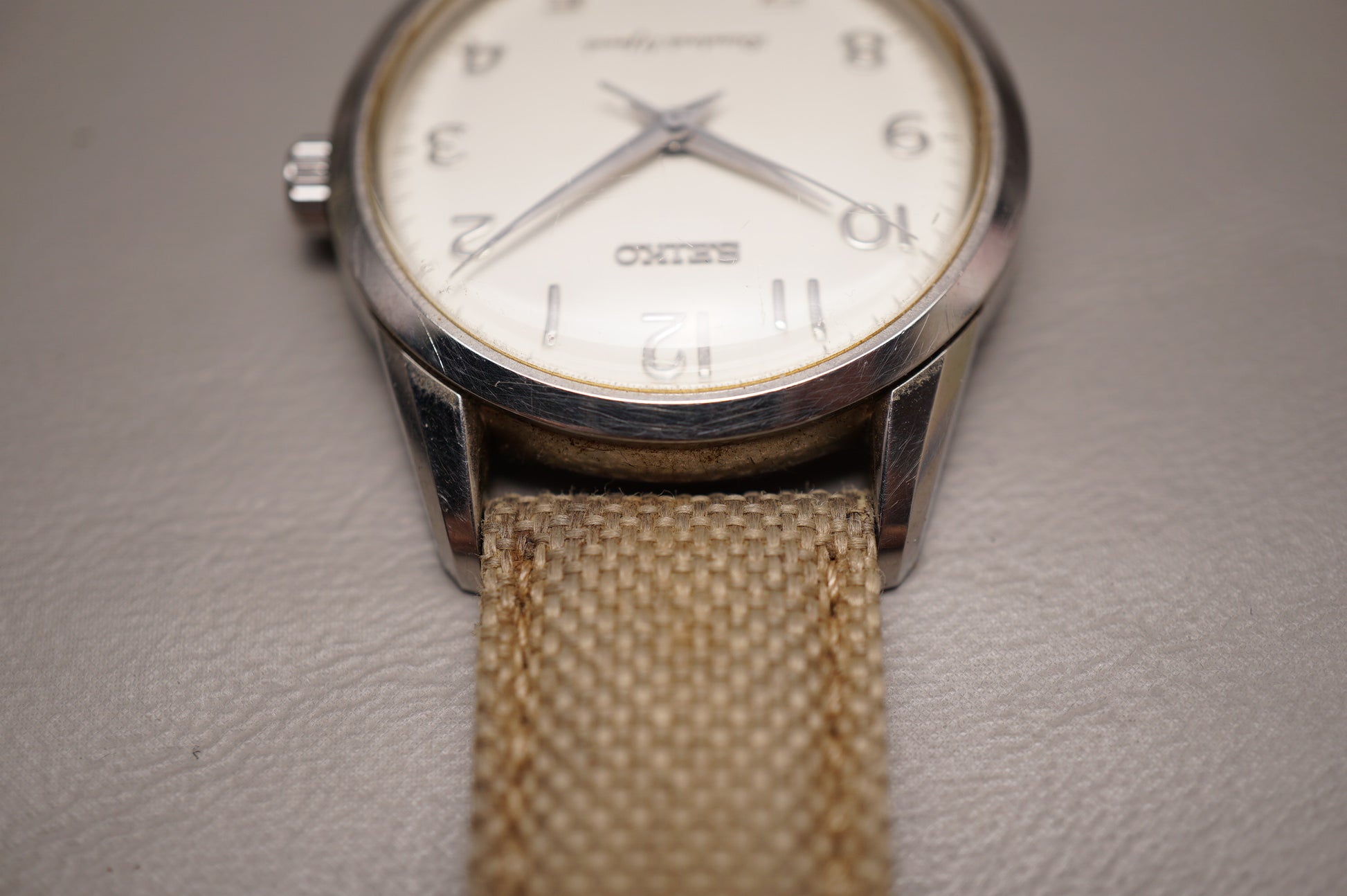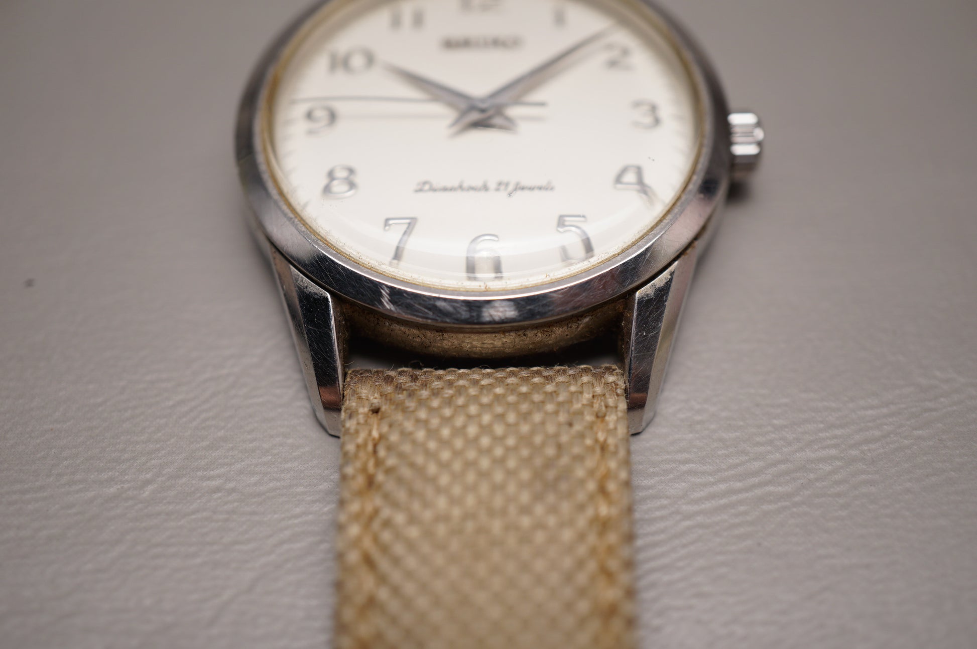 Rare find. Serial dates production to June 1997. One of the few watches utilizing the 4s24 handwound movement. Wear on crystal.