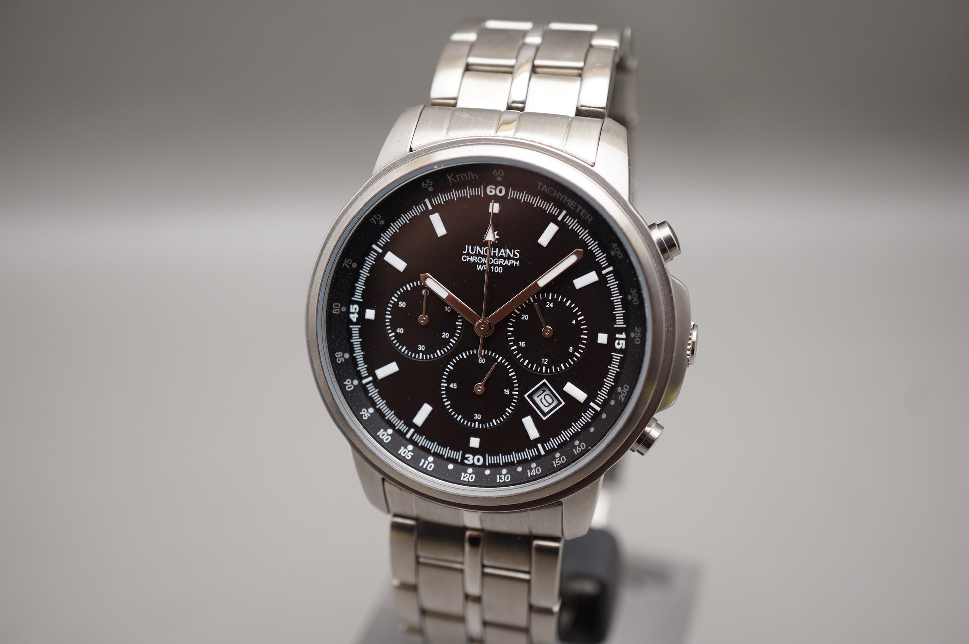 For sale is a Junghans 4006453 Black Dial Sport Chronograph Quartz Watch