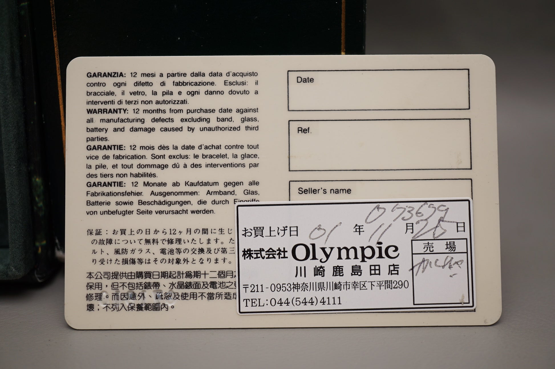 Warranty card: Stamped 01-11-25