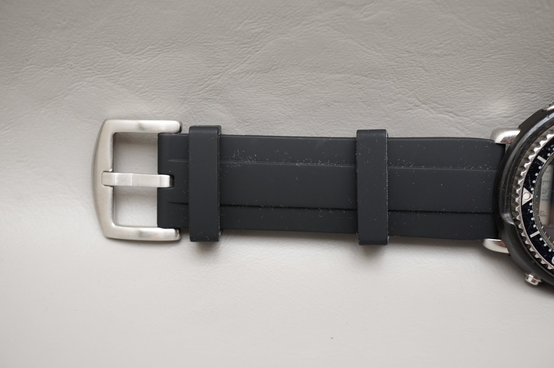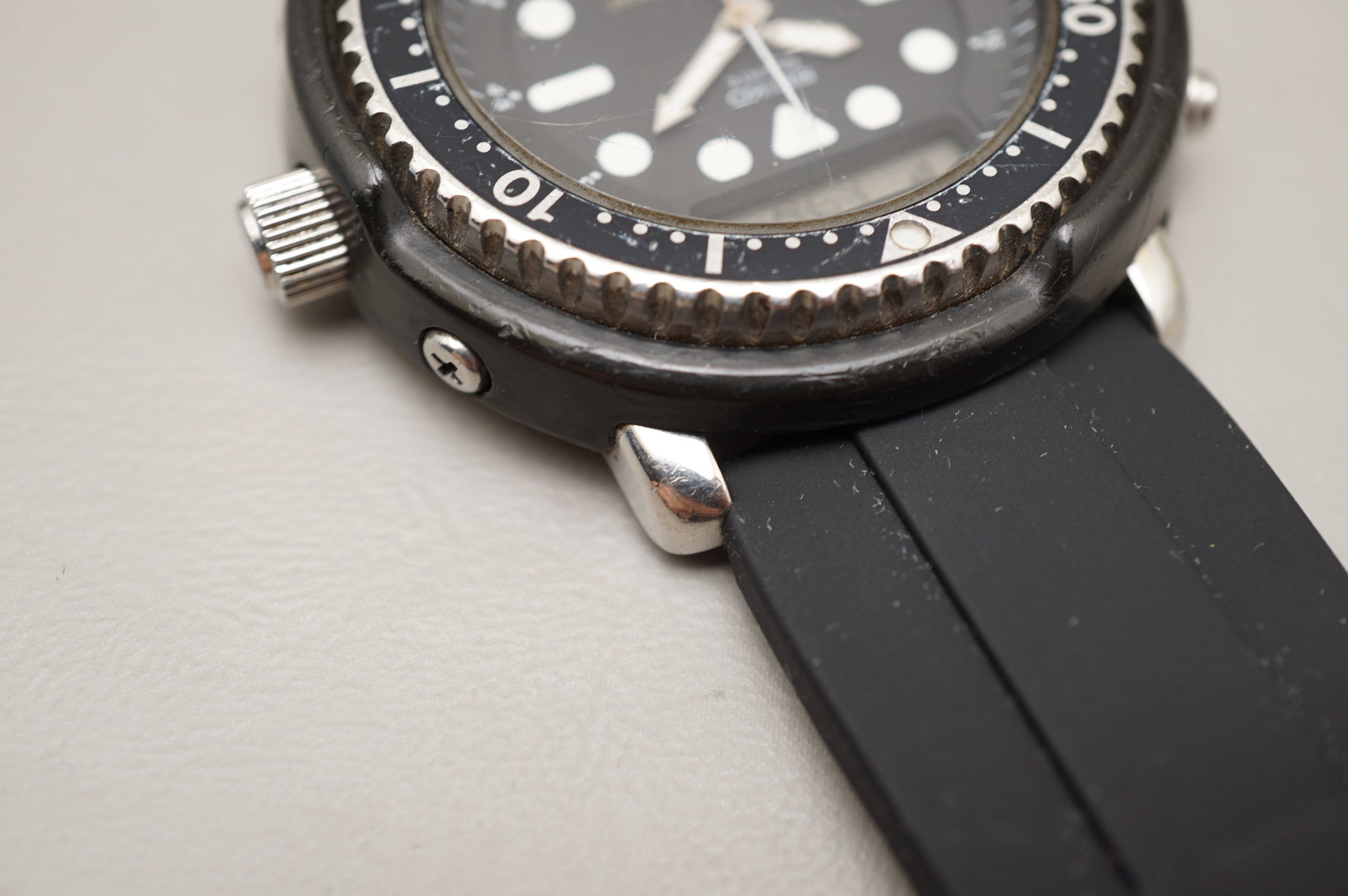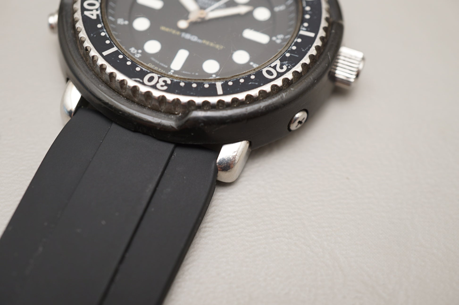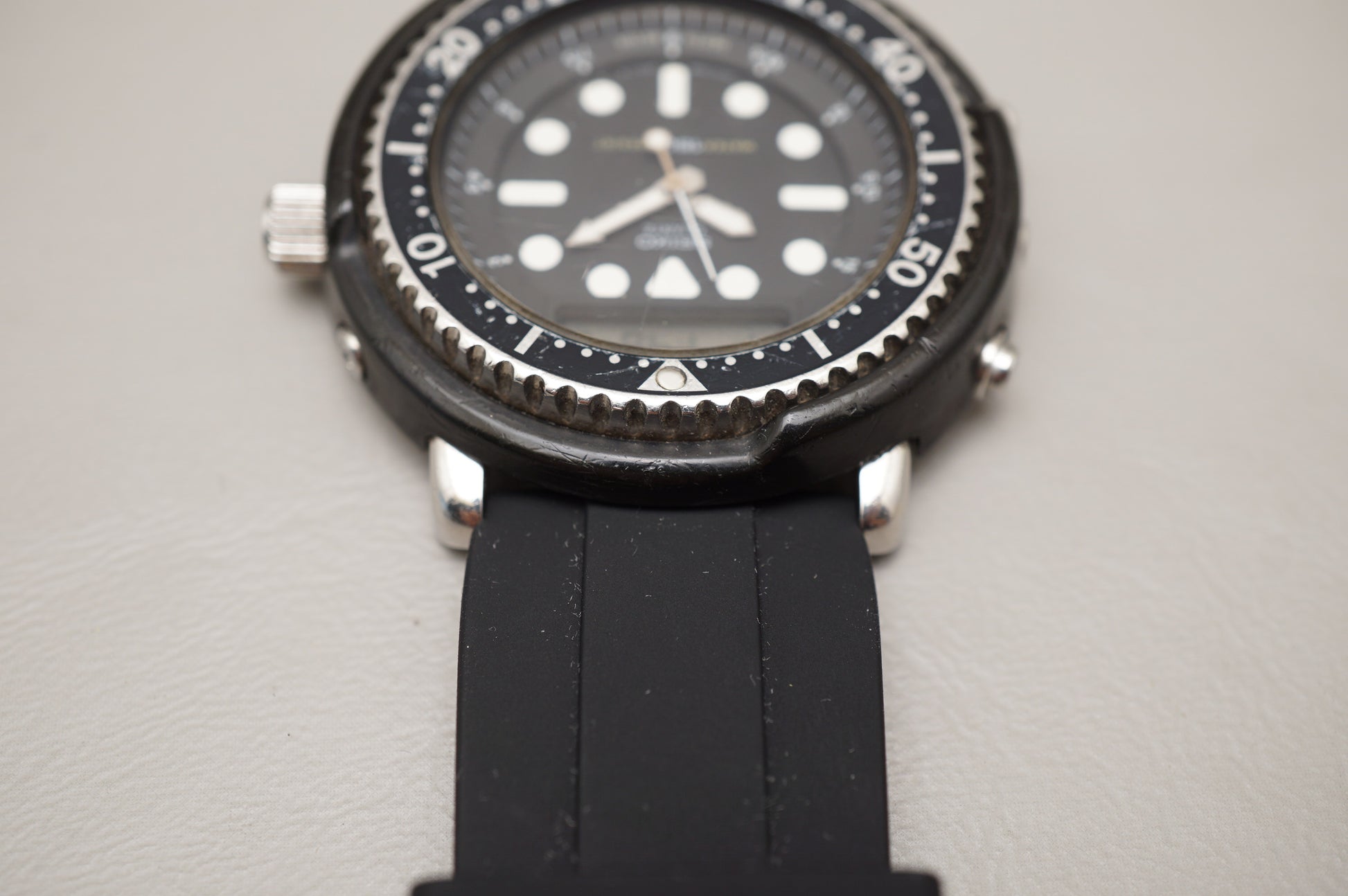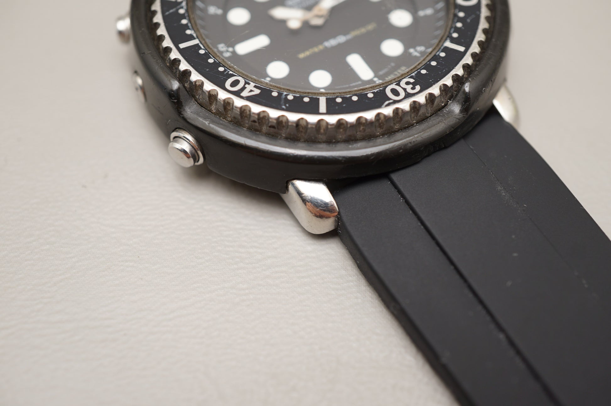 Watch head is in original condition. Serial dates production to April 1982. Bezel turns and clicks, crown screws down correctly. Pushers, display light, and alarm functional. Service history unknown.