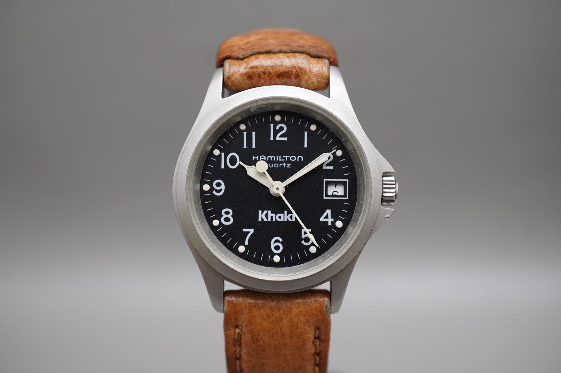 Vintage Hamilton Khaki 9771 Field Black Dial Ladies Quartz Watch Datewheel Issue