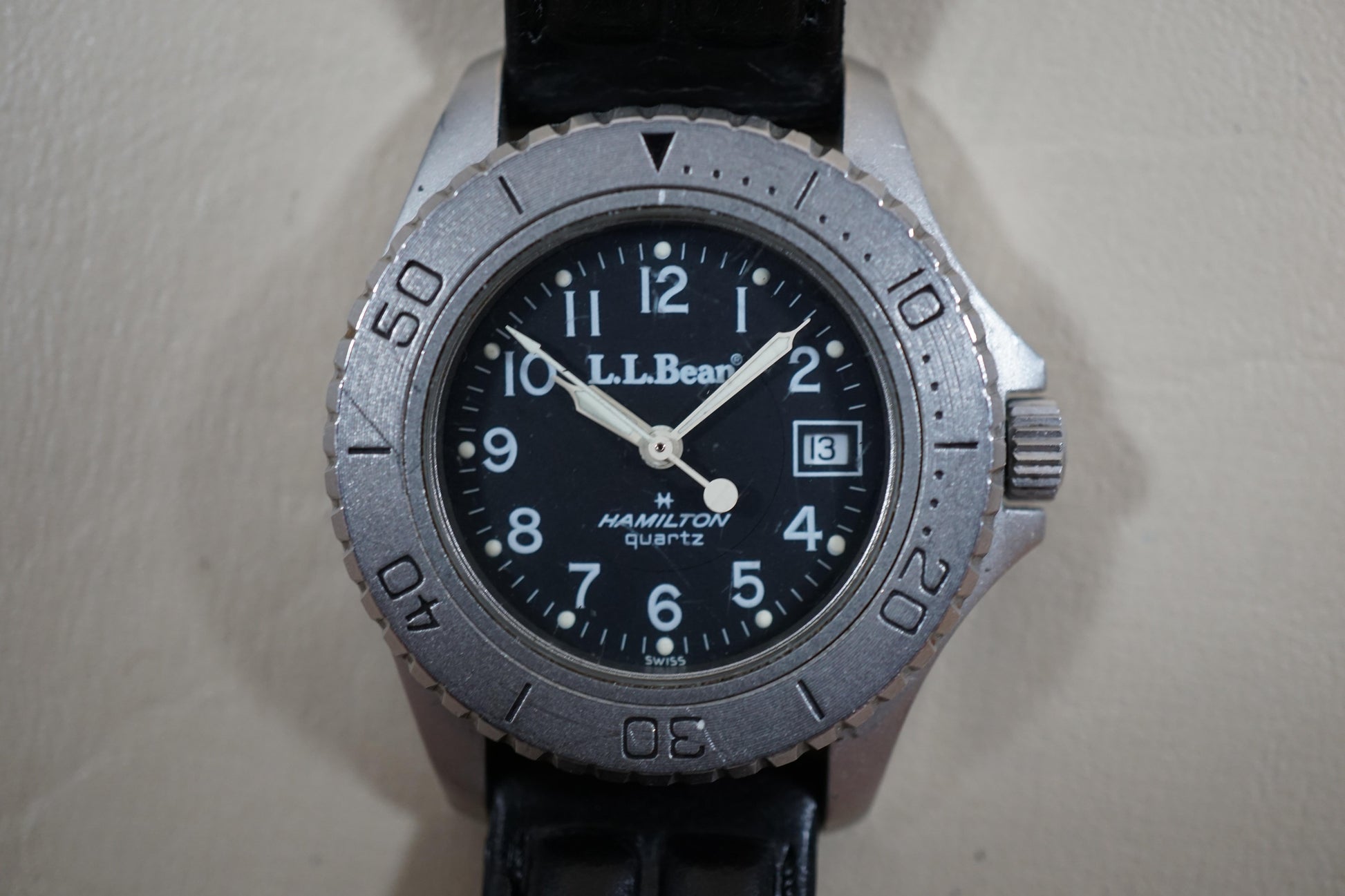 For sale is a Hamilton x LL Bean Khaki 8587 Rare Ladies Black Dial Quartz.
