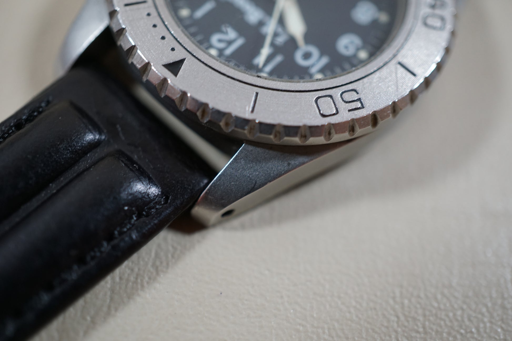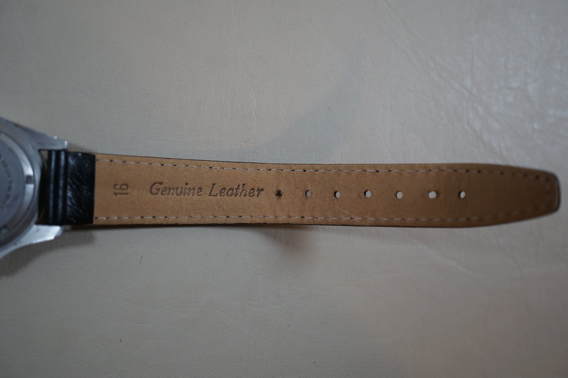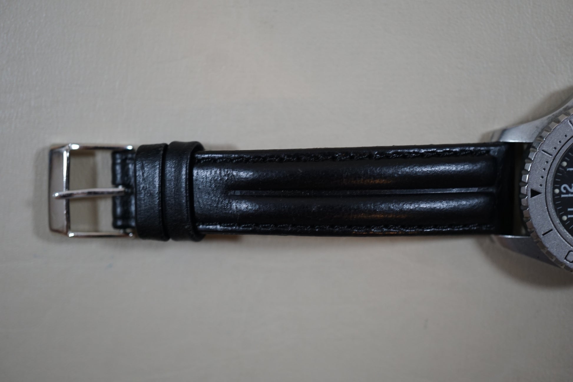 This watch is in used condition and comes as pictured on an aftermarket leather band. This piece comes watch only, no accessories are included.