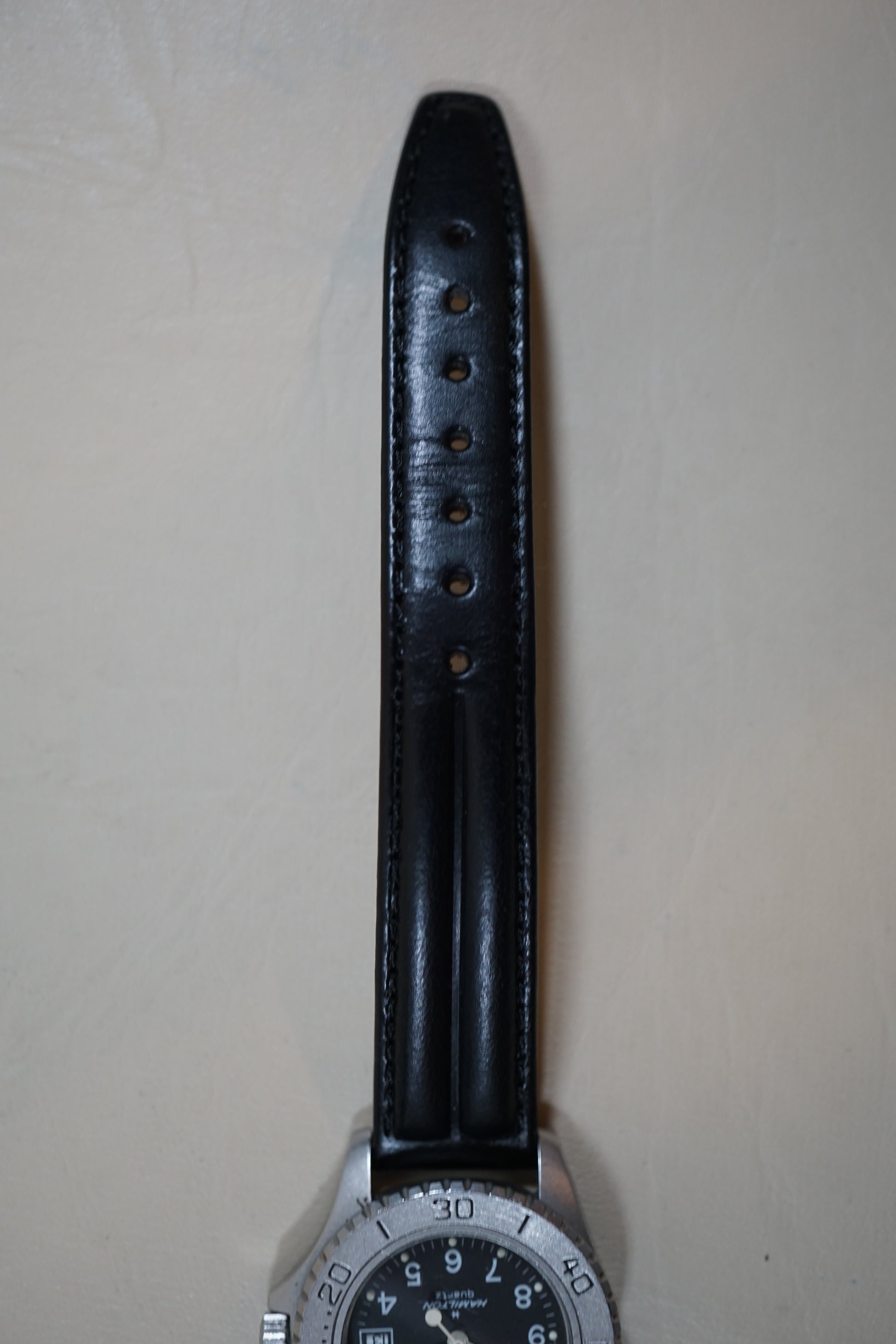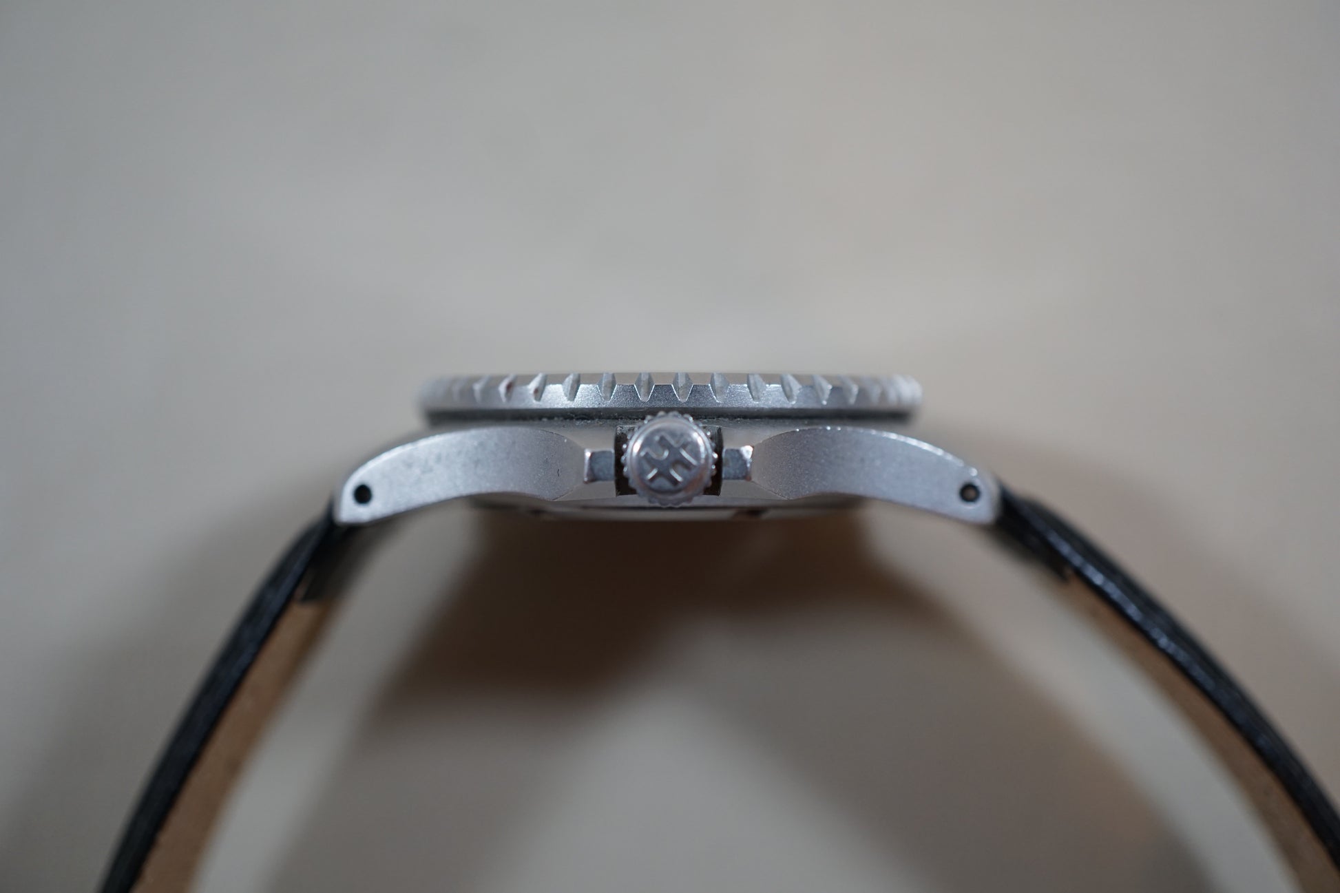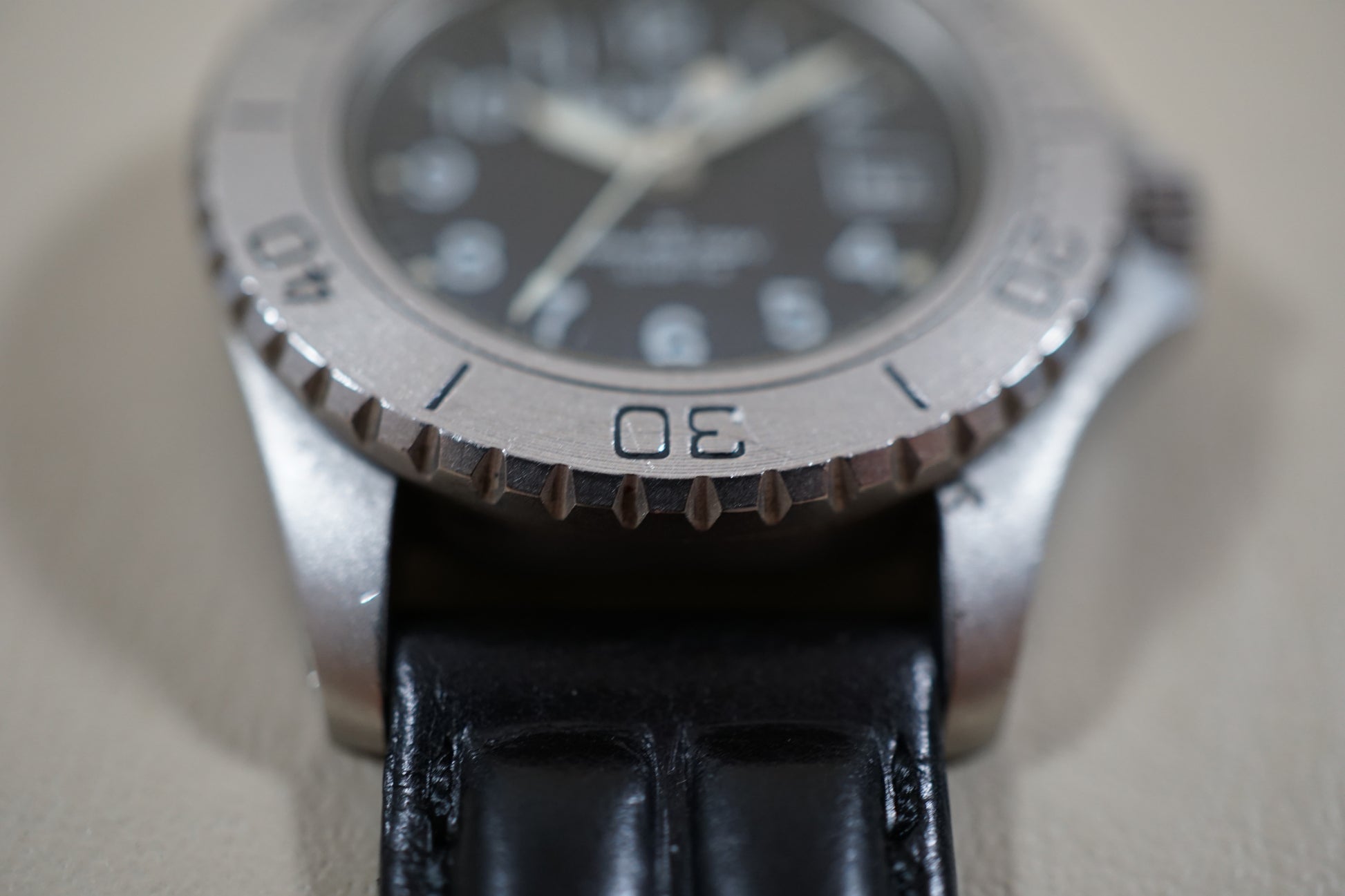 This watch is in used condition and comes as pictured on an aftermarket leather band. This piece comes watch only, no accessories are included.