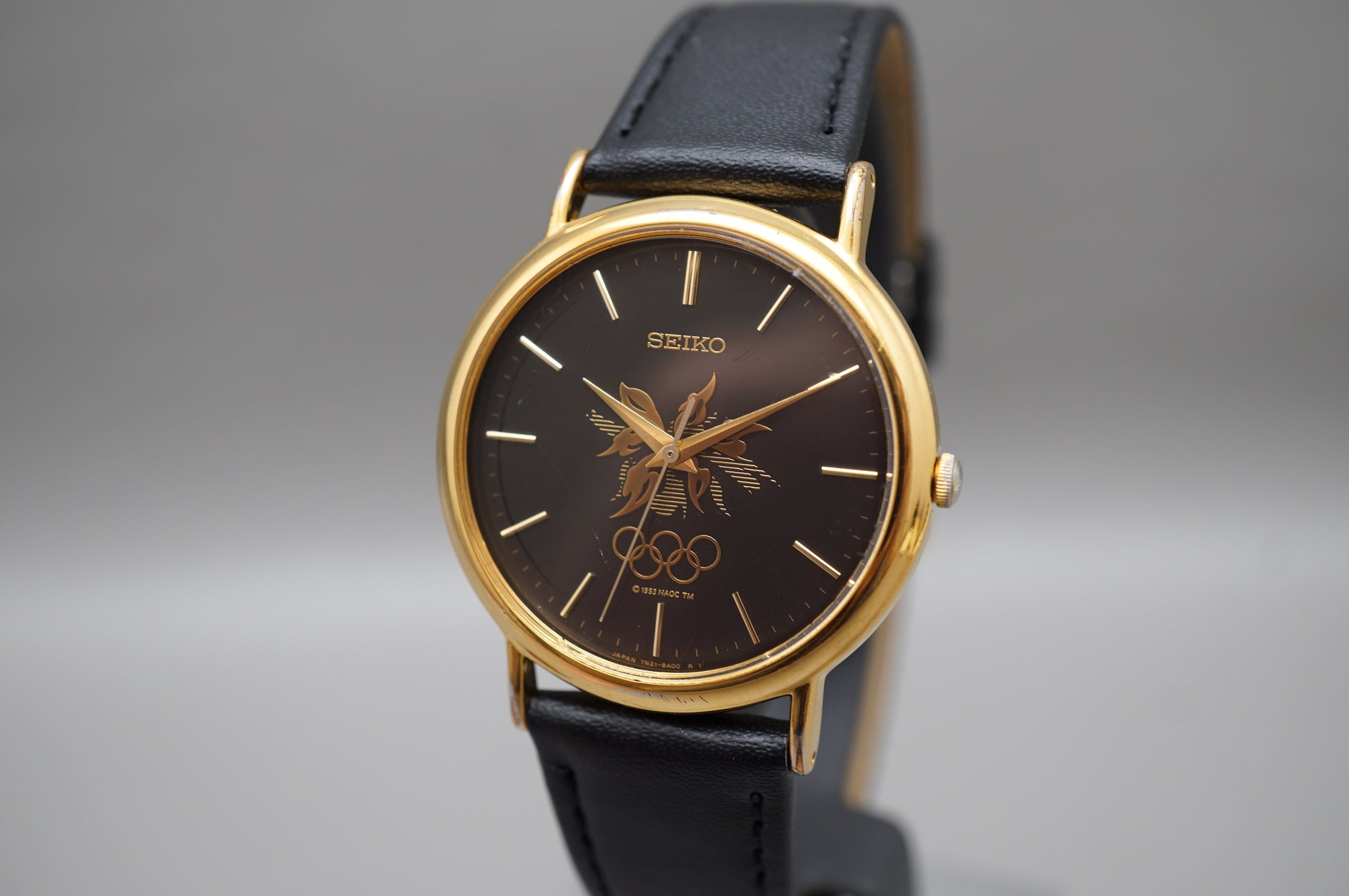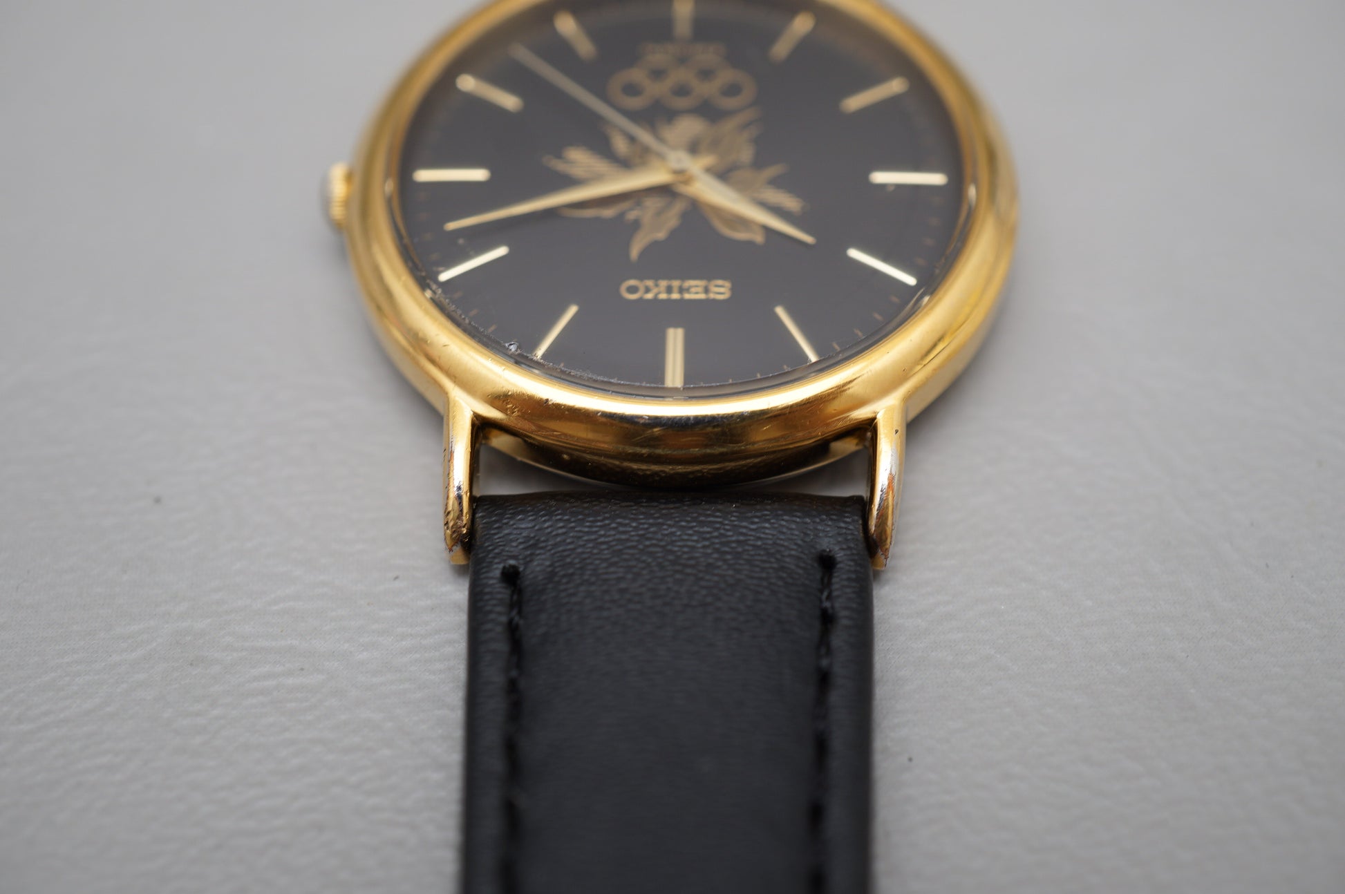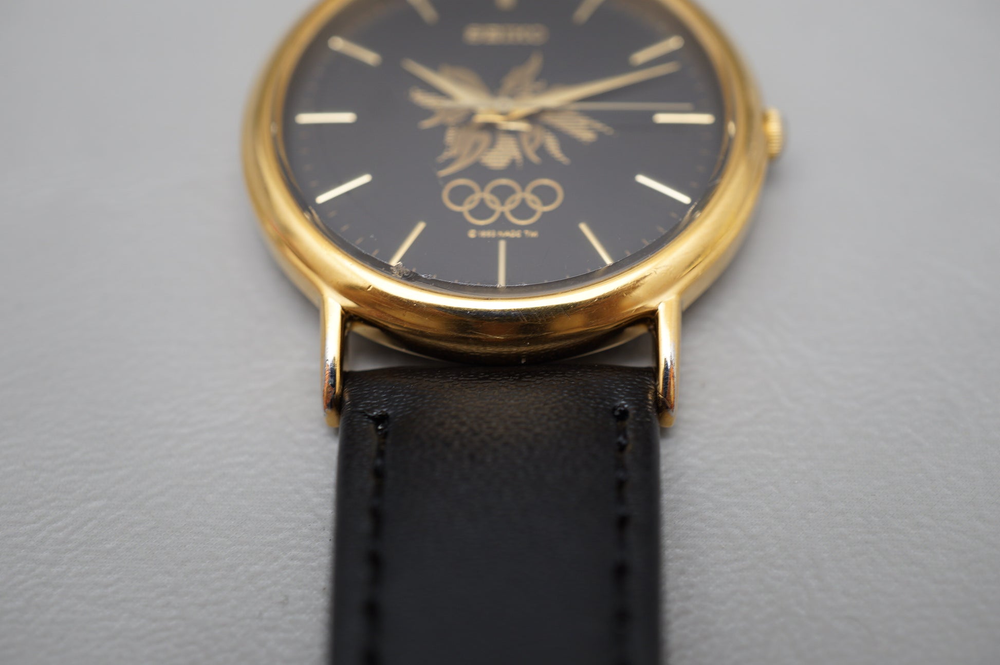 For sale is a Seiko 7N21-8A00 Black Gold Tone 1998 Nagano Olympics Quartz Watch