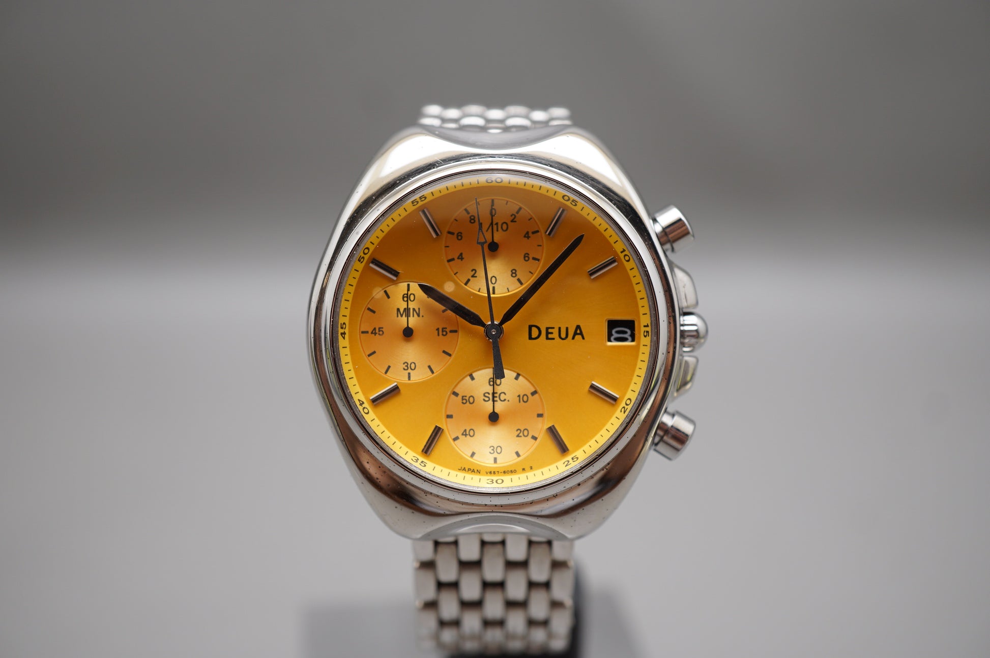 For sale is a Seiko Alba Deua V657-6040 Orange Dial Quartz Chronograph Watch