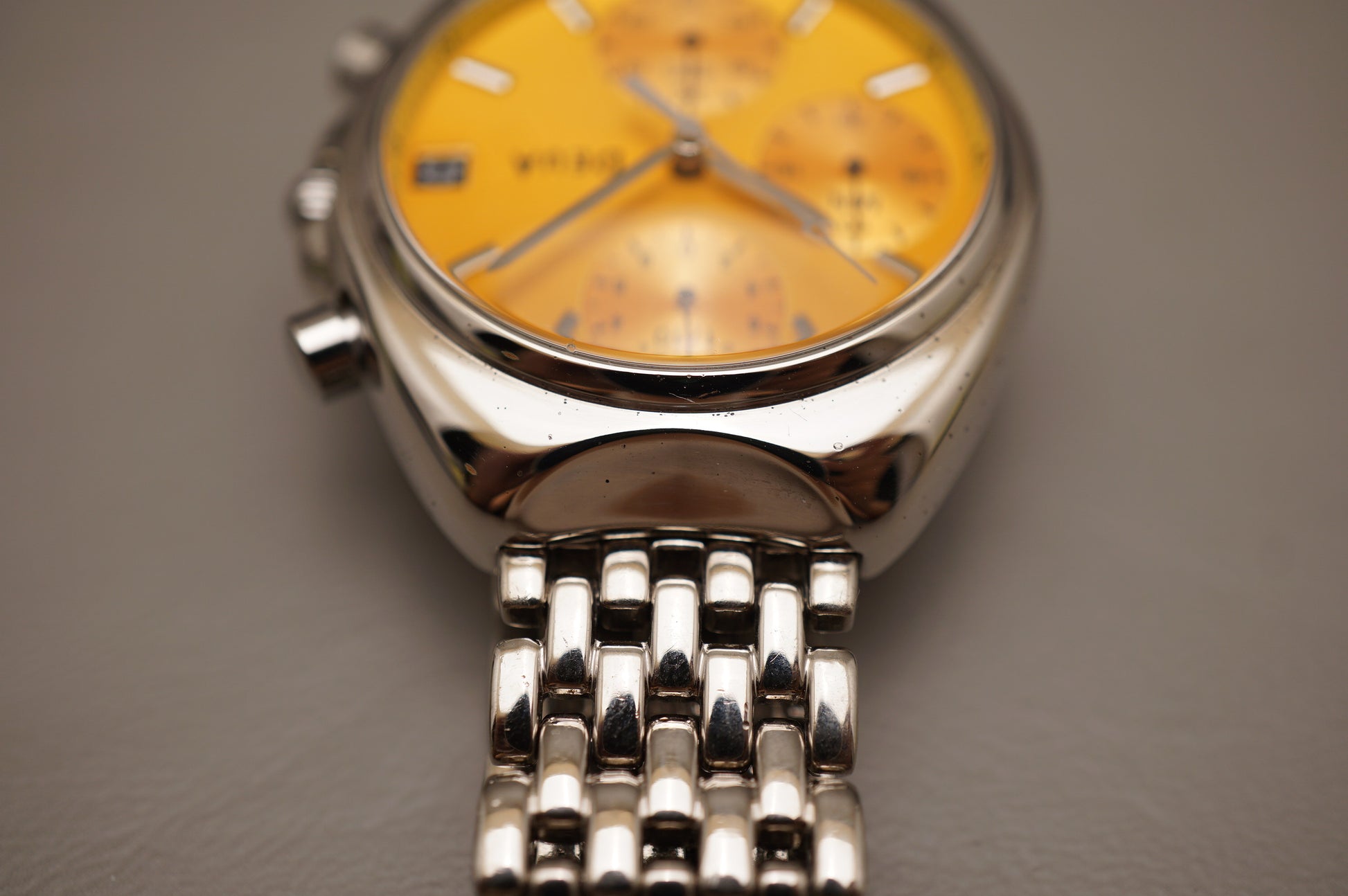 Wear on crystal. Chronograph starts, stops, and resets correctly.
