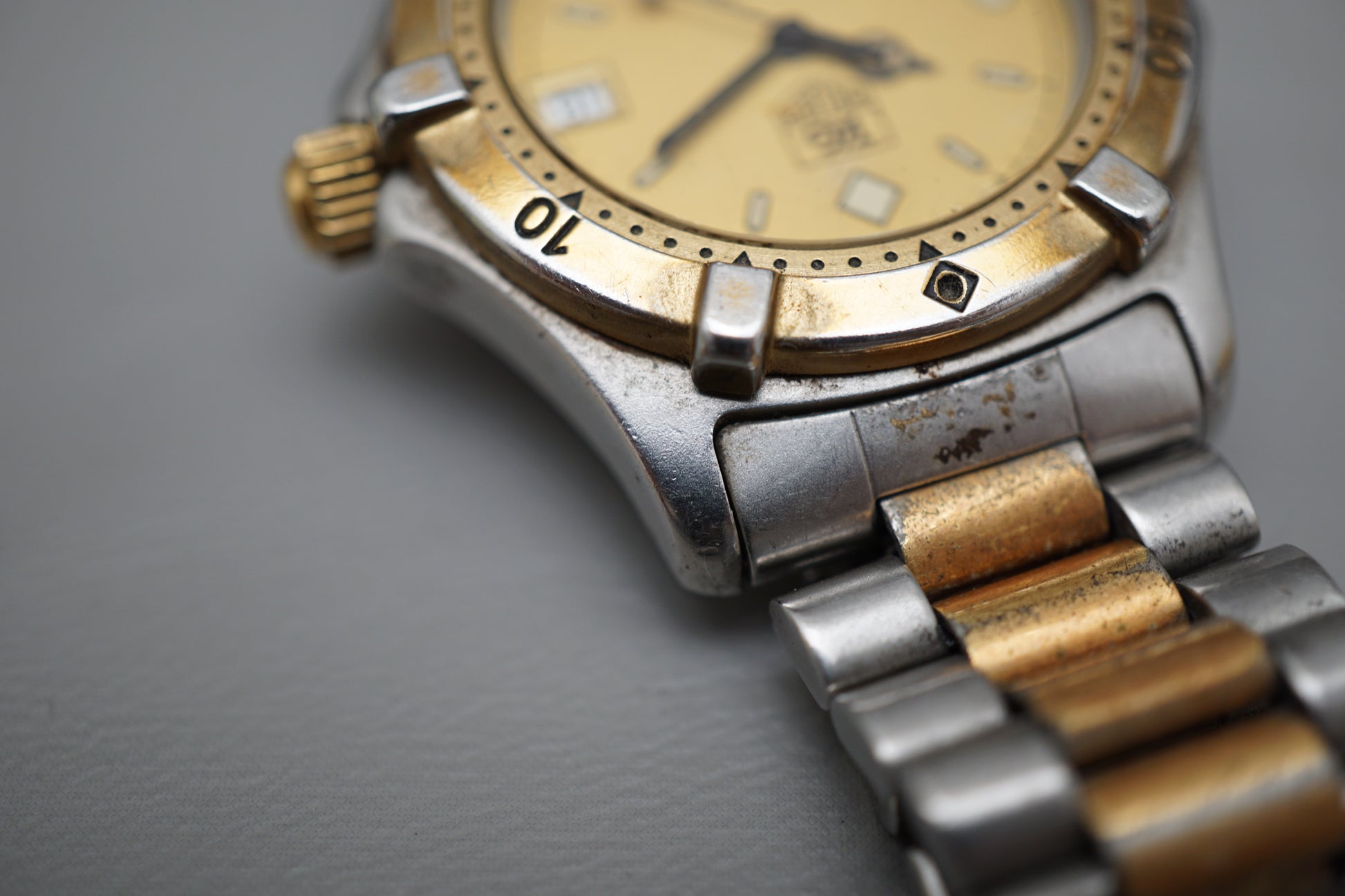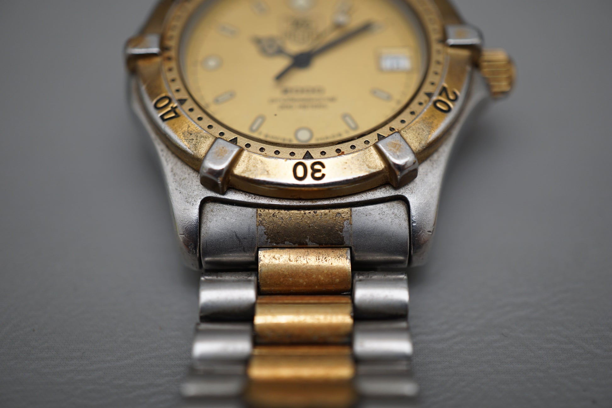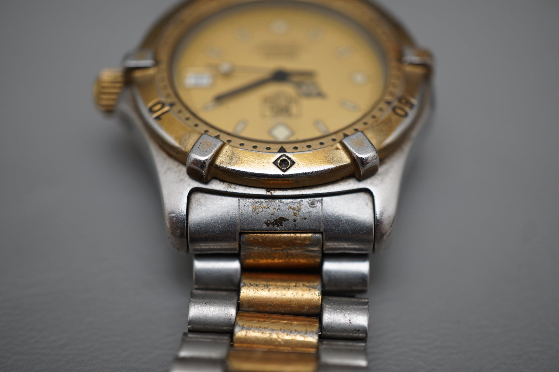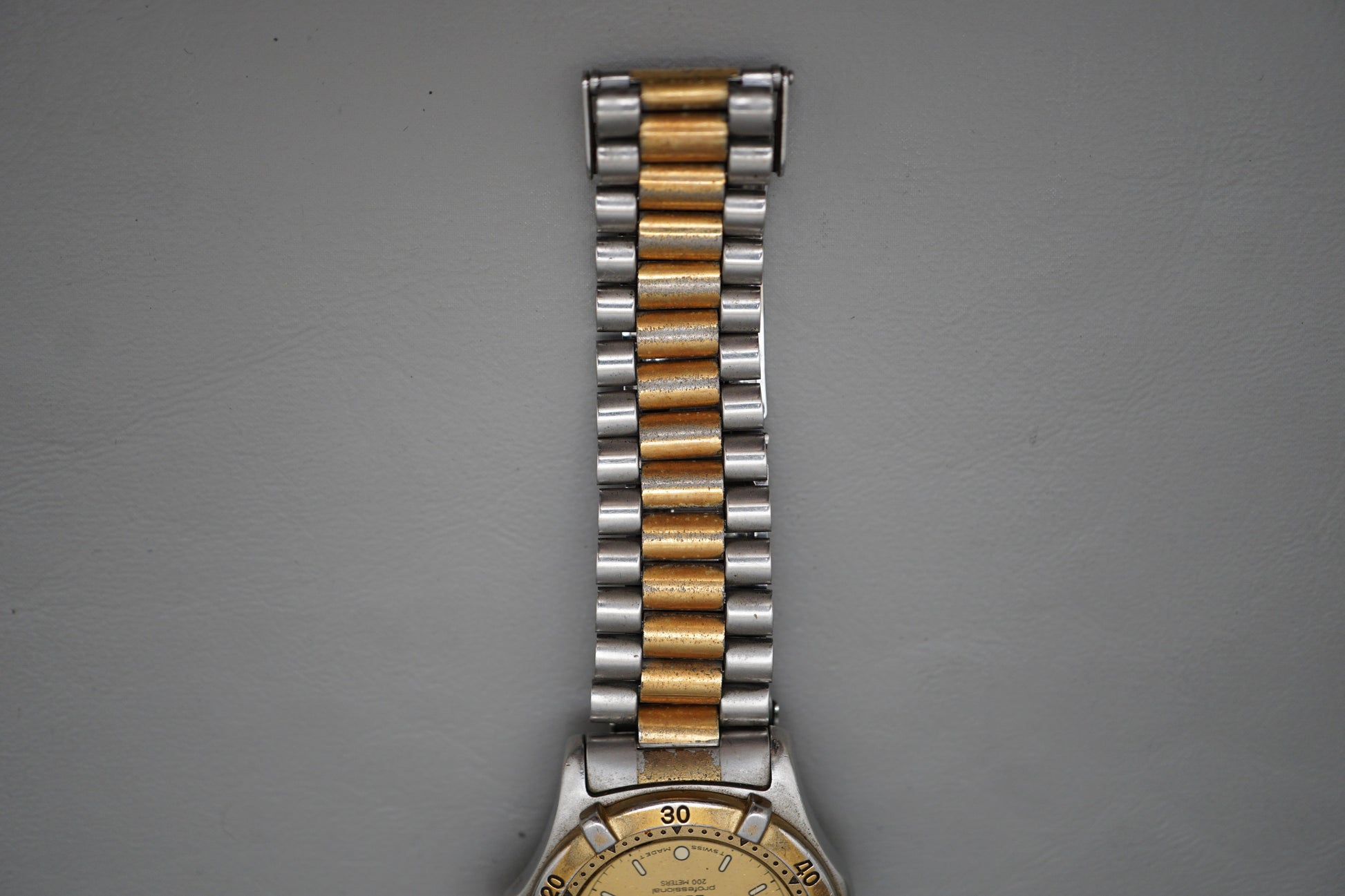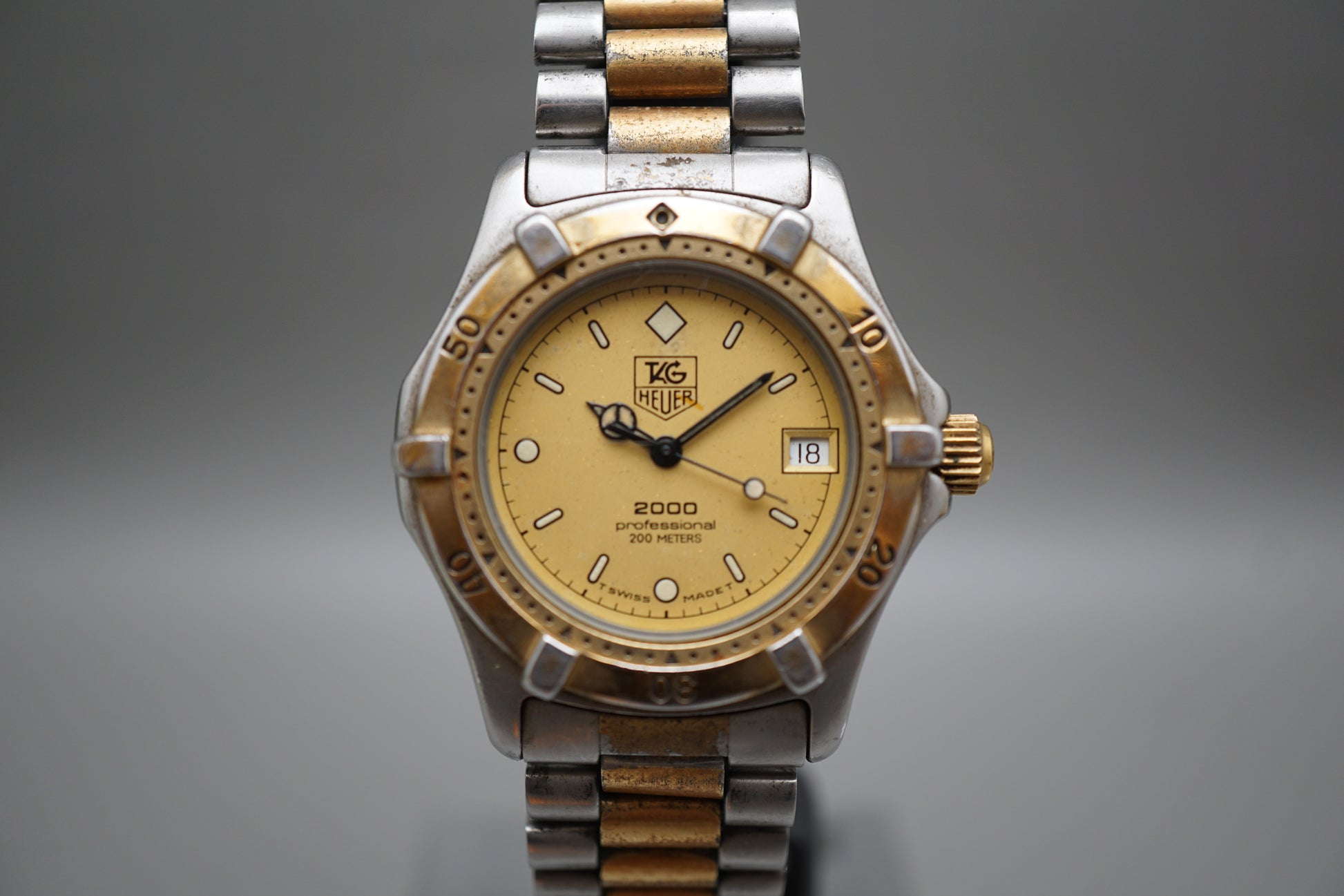 For sale is a Vintage Tag Heuer 2000 964.013 Two Tone Gold Dial Professional Quartz Watch