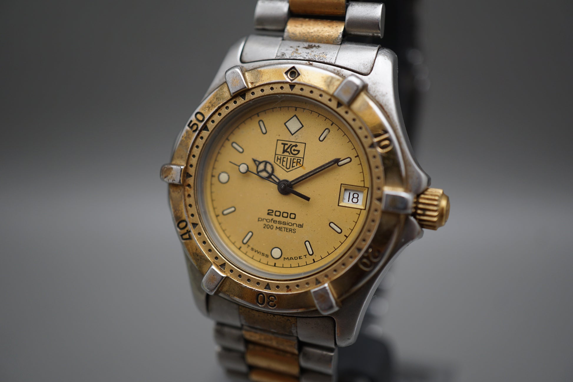 Vintage Tag Heuer 2000 964.013 Two Tone Gold Dial Professional Quartz Watch